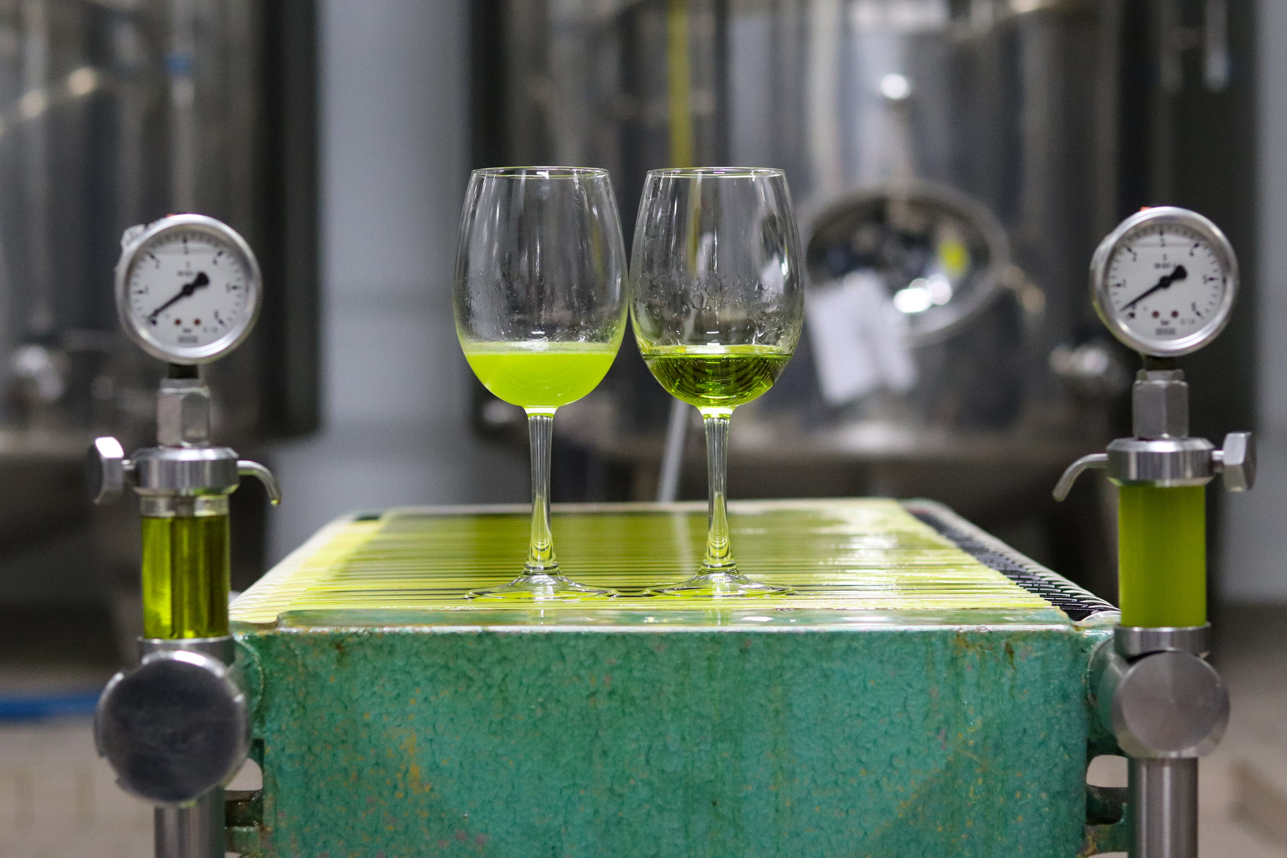 Víctor Pérez, ingeniero agrónomo y responsable de toda la producción, ya ha hecho las primeras estimaciones de la cosecha de este año. Según apuntan sus previsiones, se recolectarán unas 455 toneladas de aceituna (un 30% más que en la campaña anterior): 250 toneladas de la variedad hojiblanca —parte de estas proceden de árboles centenarios—, 150 de arbequina y las otras 55 correspondientes a cornicabra y picudo. En total, se prevé que la producción de los cuatro tipos de AOVE alcance las 78 toneladas. Una campaña de producción muy limitada y cuidada que da como resultado un aceite de oliva virgen extra exclusivo y de una calidad única en España.