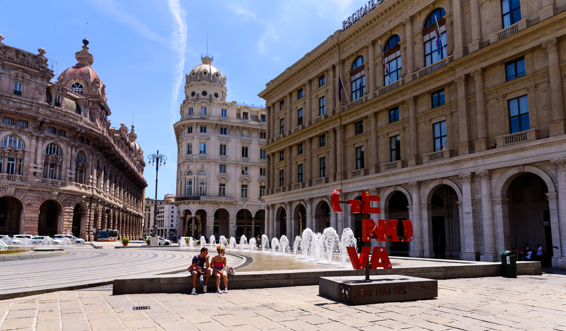 La Plaza Ferrari es la principal plaza de Génova, lugar de cita y de reunión de los genoveses. Fue dedicada a Raffaele De Ferrari, duque de Galliera, que en 1875 donó una notable suma de dinero para la ampliación del puerto.