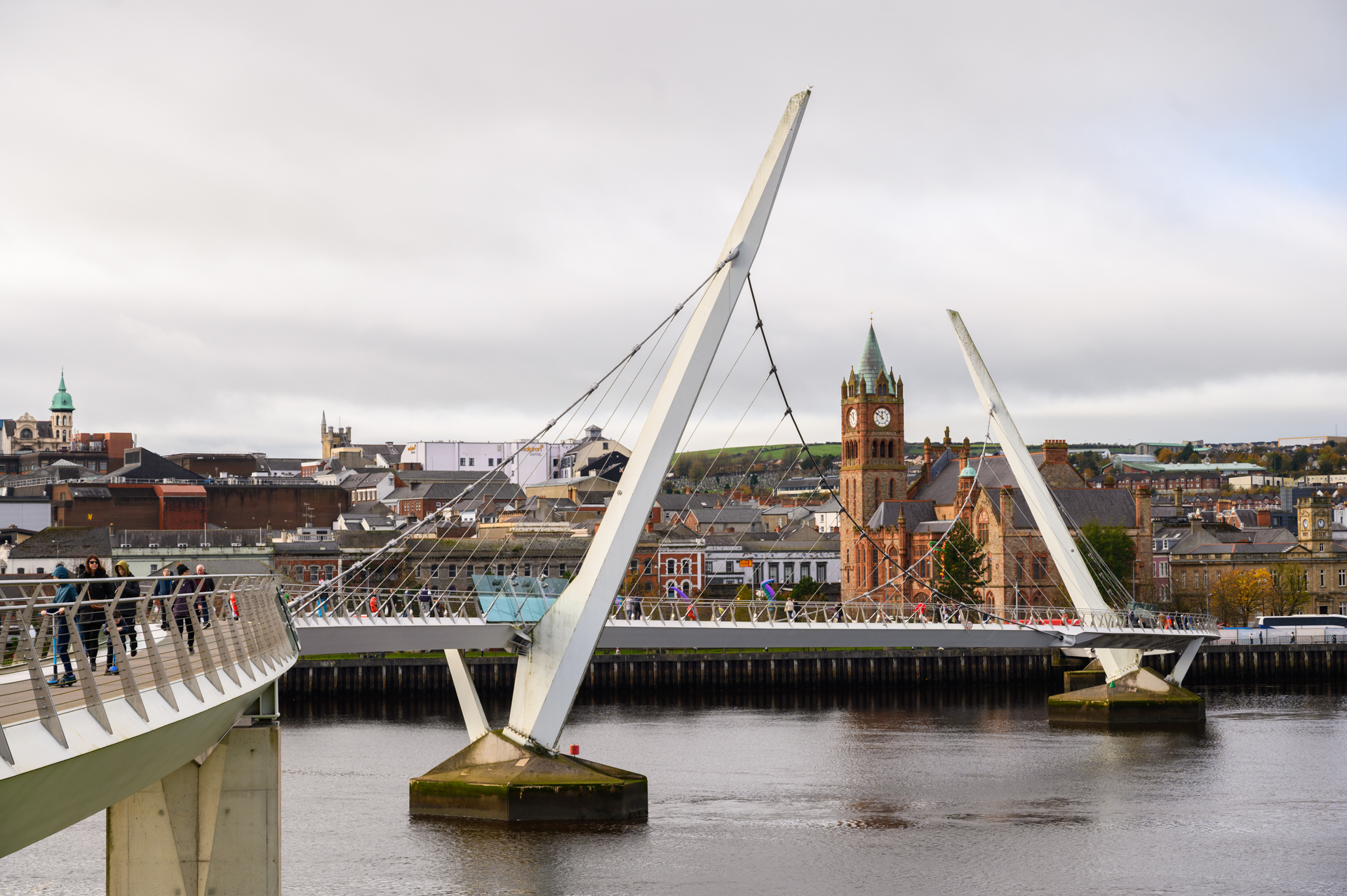 En un primer vistazo al llegar se distingue su fabuloso Puente de la Paz, una estructura metálica peatonal que simboliza la unión entre comunidades e inaugurado en 2011. En la actualidad es la mejor conexión sobre el río Foyle para bicicletas y peatones entre el centro de la ciudad y la orilla de Ebrington Square. Aquí se ubica un moderno hotel spa, el Ebrington Hotel, que destaca por su calidez y comodidad. Y por supuesto, en esta zona se nos presentan varios restaurantes destacables, uno de ellos con unas bonitas vistas al río, donde poder almorzar o cenar y no dejar pasar la oportunidad de tomarse una pinta de cerveza en The Walled City Brewery (justo al lado del hotel), un establecimiento que ha conseguido maridar a la perfección sus propias cervezas artesanas con platos típicos irlandeses, y no tan típicos.