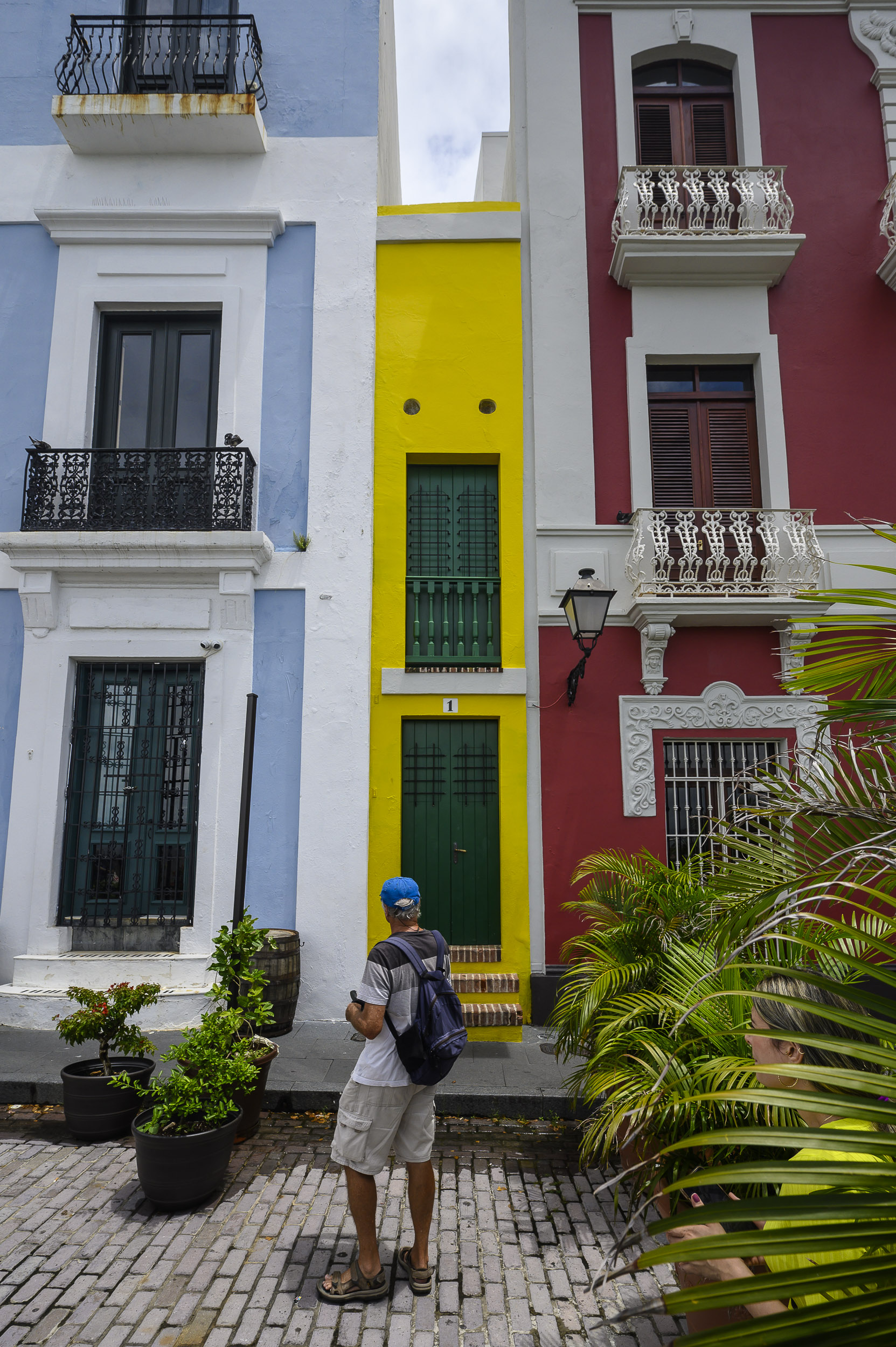 Un turista se detiene frente a la que pasa por ser la casa más estrecha de San Juan.