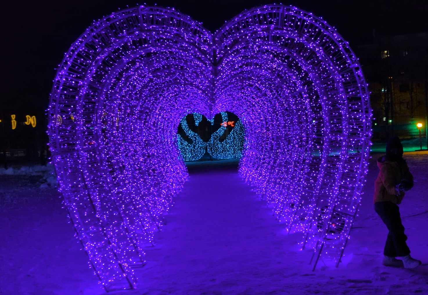 Iluminación del parque de invierno de Snow Glow. Merece la pena visitarlo una vez es de noche (cosa fácil teniendo en cuenta en diciembre apenas tienen cuatro horas de luz solar en Rovaniemi).