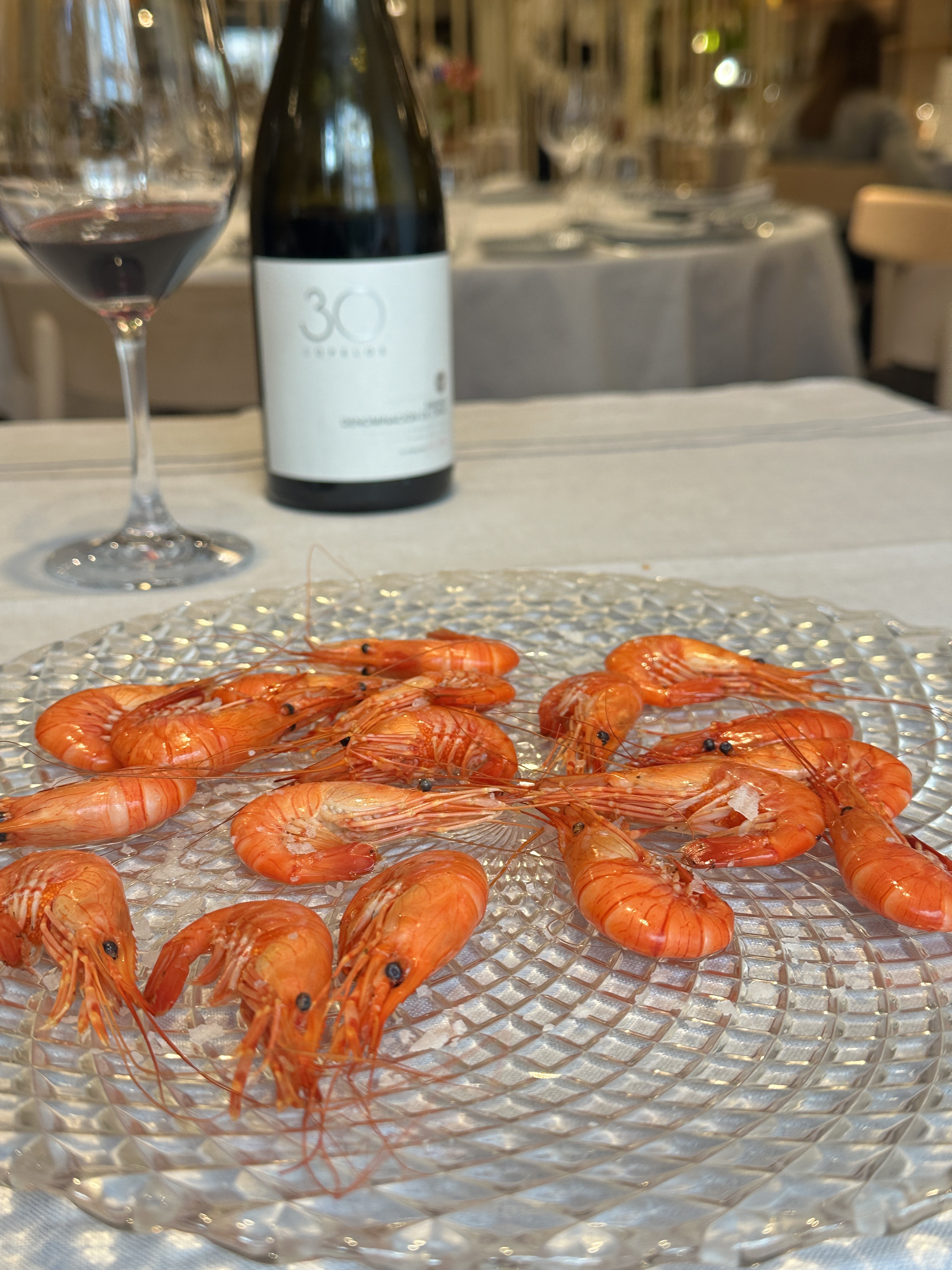 Y es cierto que casi todo el producto viene del norte de España, pero hay mariscos que hay que buscarlos en el sur y de ahí, de las costas de Cádiz y Huelva, llegan unos extraordinarios carabineros (14€ / 100grs) también a la plancha, para mancharte las manos y disfrutar a lo grande.