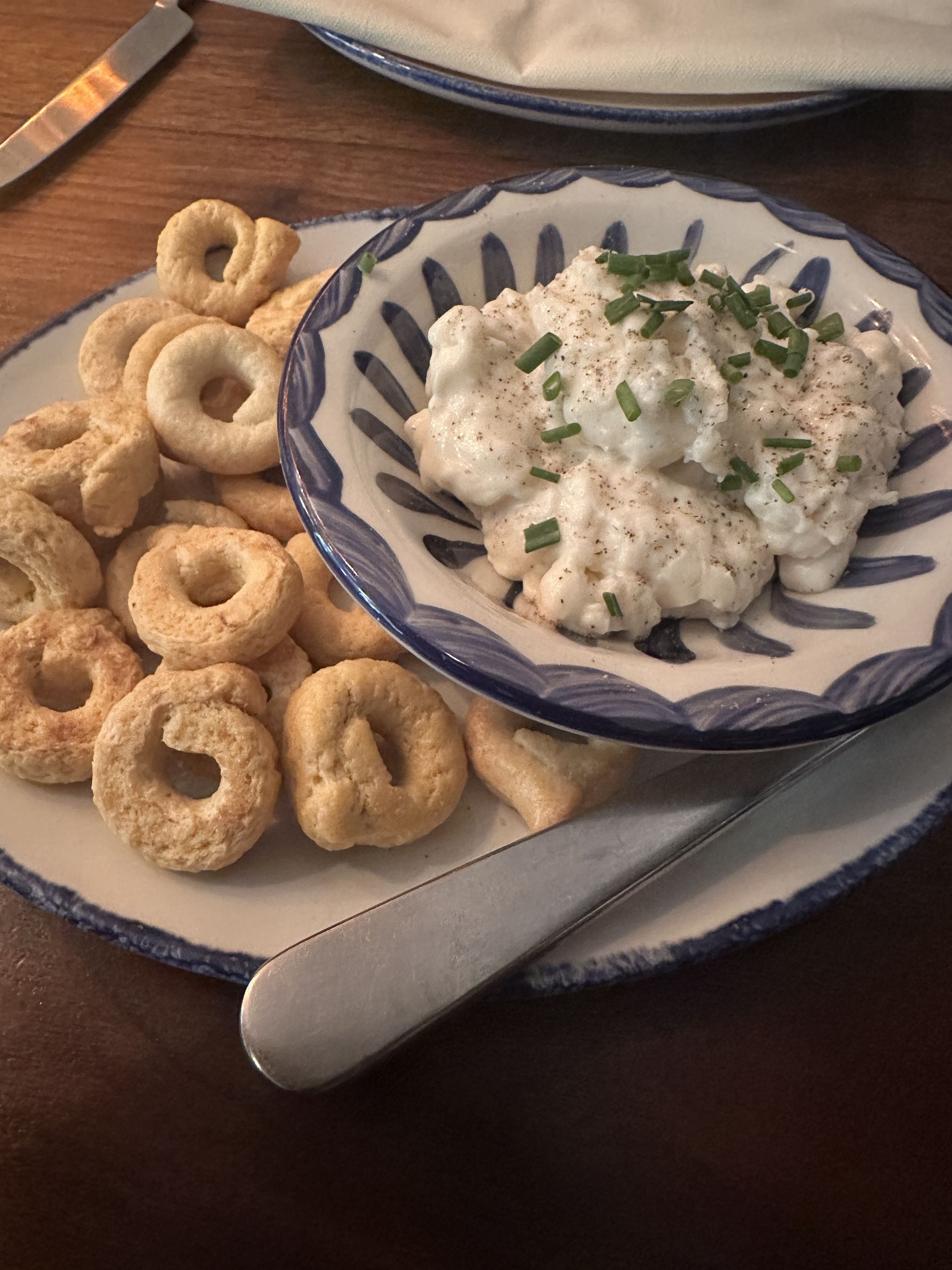 Pero si eres un amante del queso como es nuestro caso, te recomiendo la gorgonzola al champán (9€), servida como si fuese una crema para untar con los panecillos taralli y disfrutar. Además, tienes la opción de una tabla de quesos internacionales, una ensalada de burrata di Andria o el cabembert fundido con confitura de tomates.