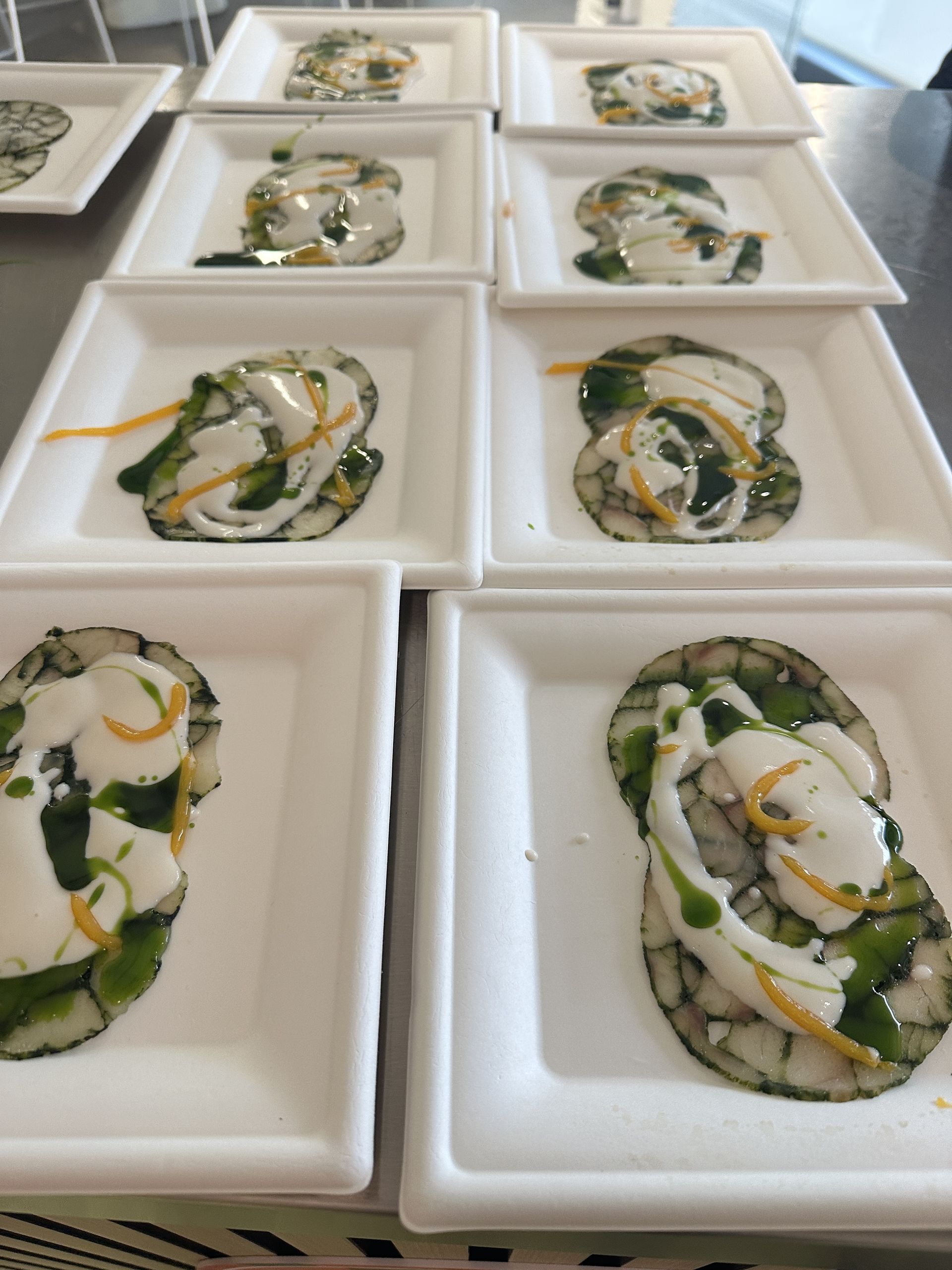 Ángel León, de los restaurantes Aponiente –con tres estrellas Michelin– y Alevante, ha elaborado una dorada en escabeche de plantas halófilas; Julio Zhang, del restaurante Soy Kitchen, un rodaballo estilo Sichuán; Carlos del Portillo, del restaurante Bistronómika, un pargo a la brasa; y Rosa Macías, de Bar FM, una fritura de lubina en taquitos.