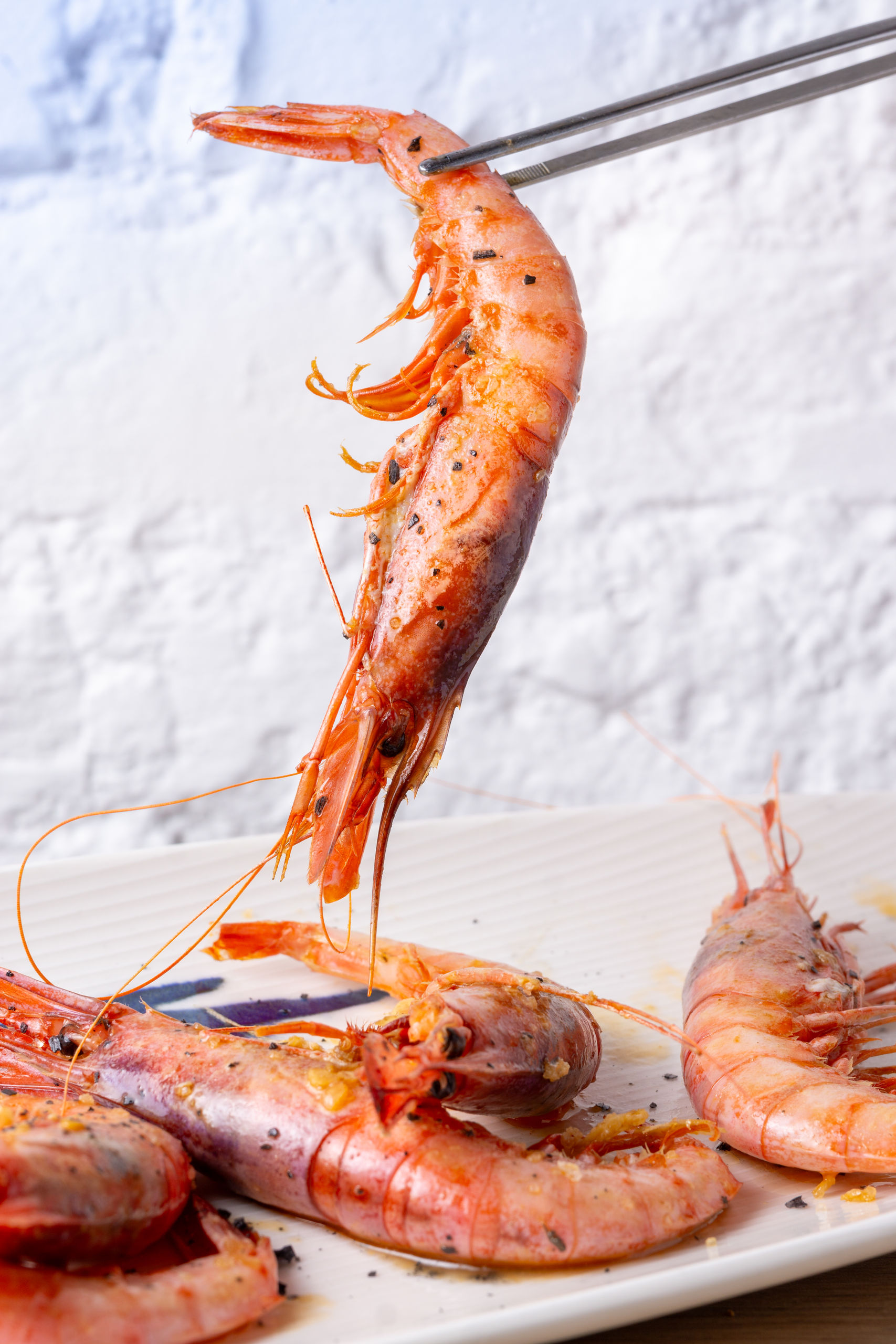 Pero sin duda merecen mucho la pena las sepionetas de costa a la plancha (32€) por no hablar de una de las joyas de la carta, la espectacular gamba roja de Palamós mediana (190€ kg), también preparada a la plancha y lista para mancharte las manos y saborear desde la cabeza a su cola.