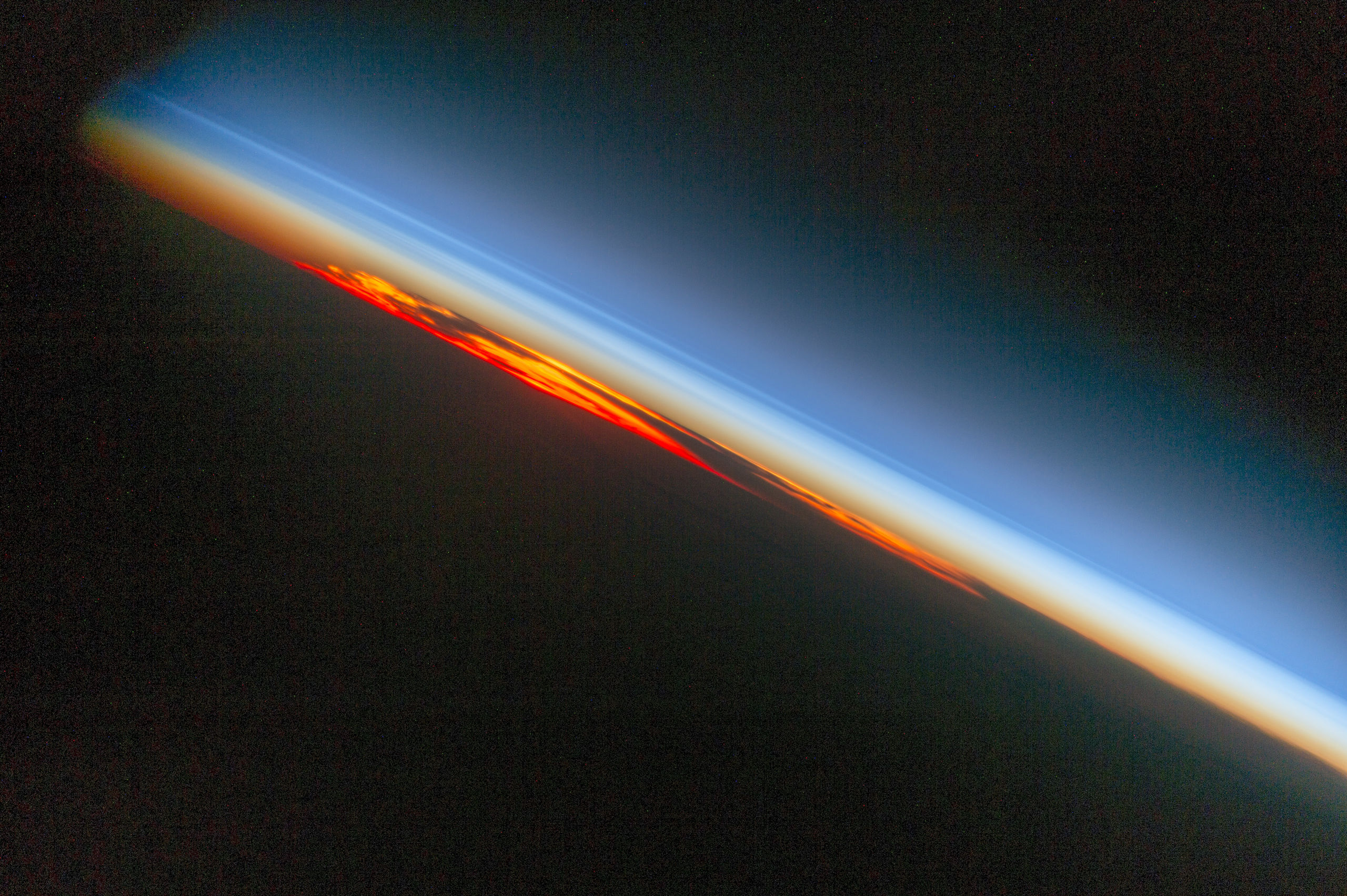 Otra imagen tomada desde la Estación Espacial Internacional. Esta muestra la caída del Sol, dando lugar a la oscuridad de la noche.