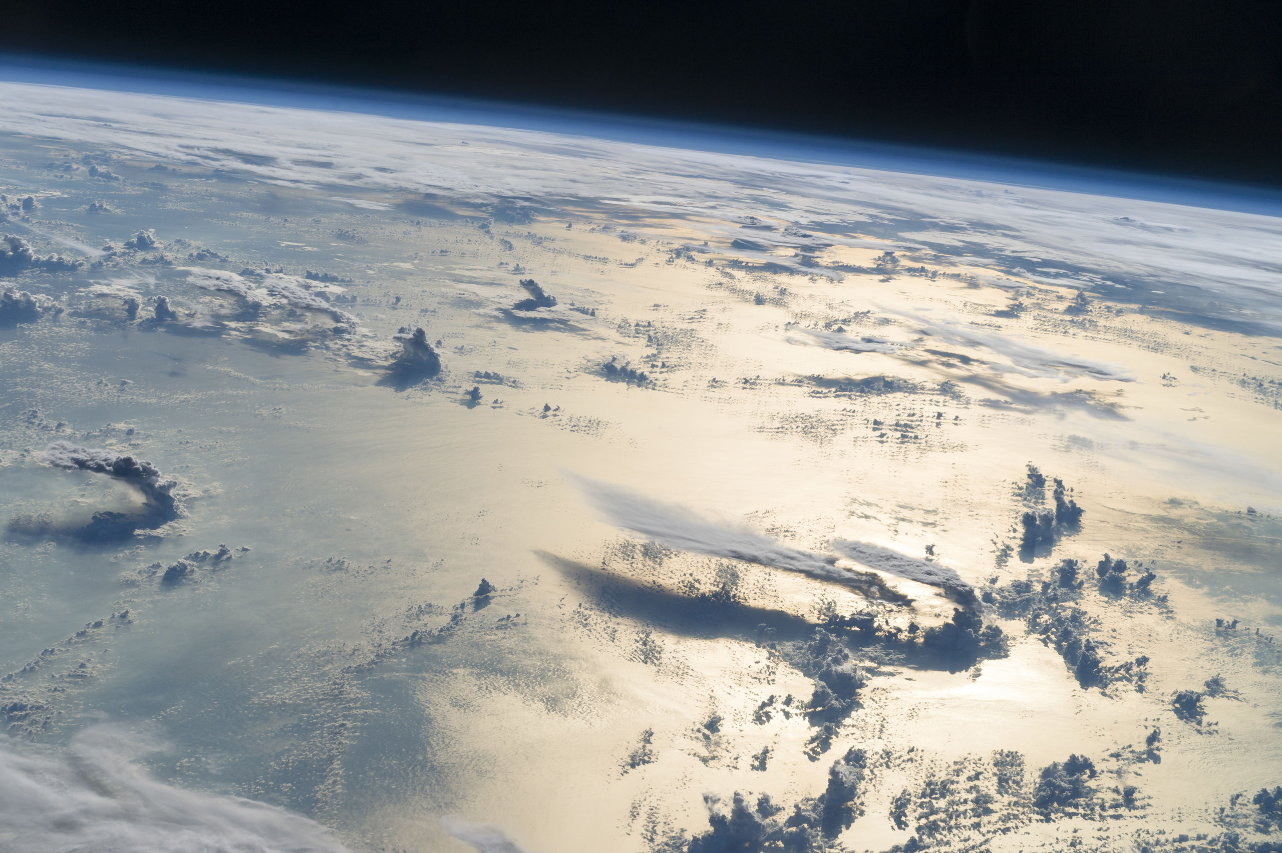 La visión desde el espacio siempre resulta espectacular. En este caso, se puede observar varios conjuntos de nubes que sobrevuelan el mar en Filipinas.