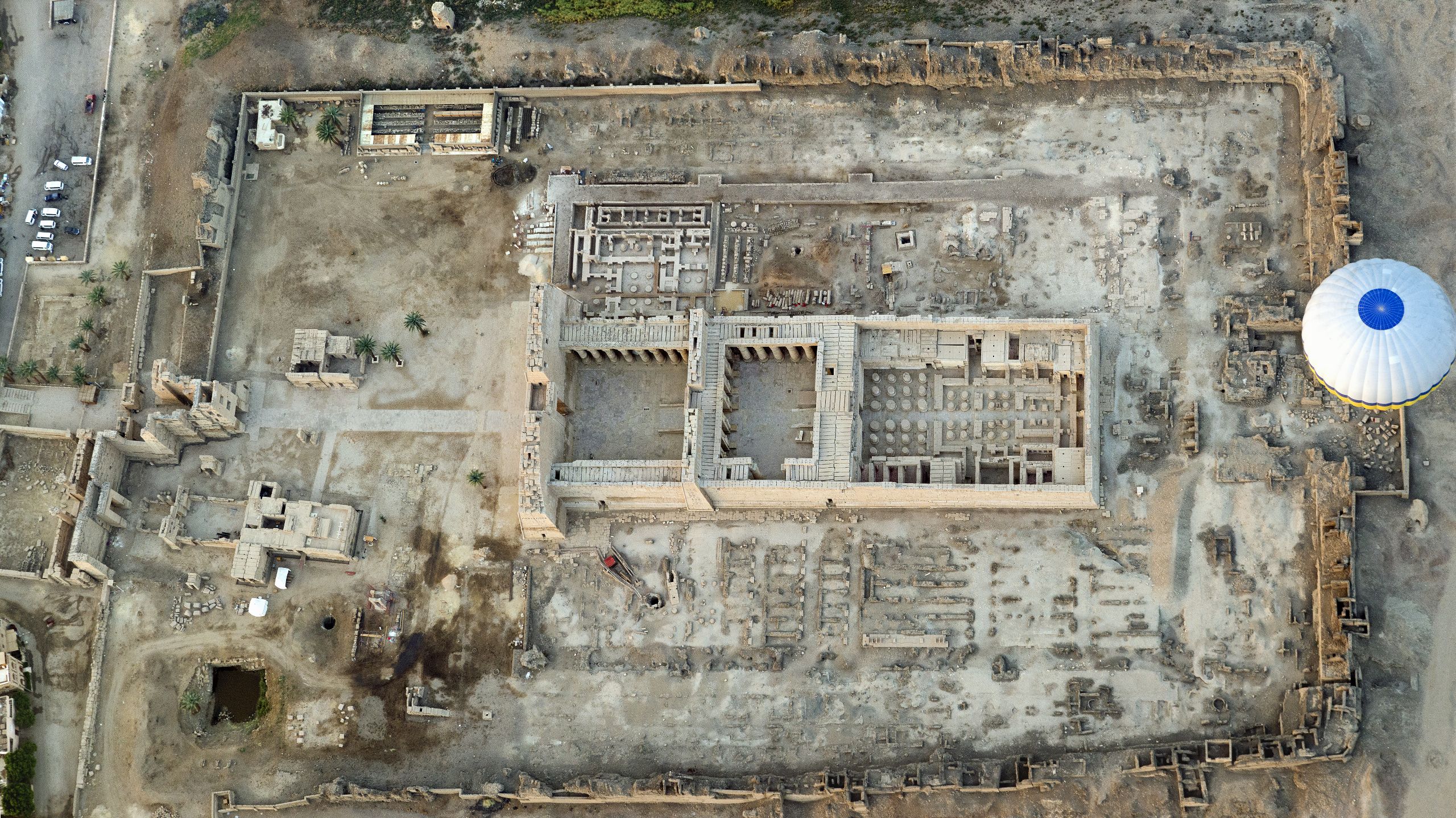 Esta llamativa estructura del Reino Nuevo de Egipto se encuentra en la ciudad de Medinet Habu. Tiene una gran extensión de paredes decoradas con relieves y simboliza la victoria de Egipto frente a los Pueblos del Mar, durante el reinado de Ramsés III.
