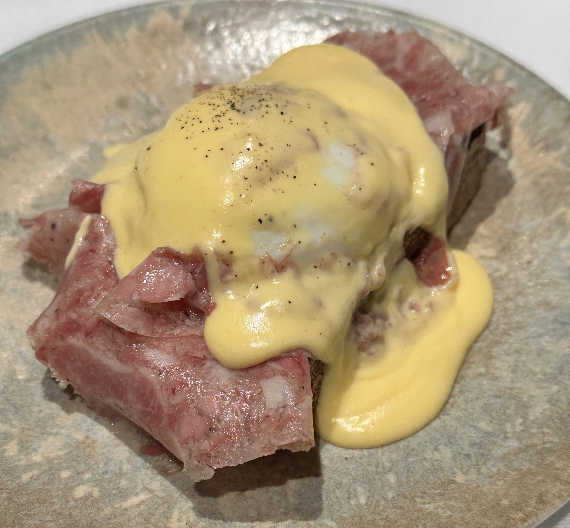 Muy buenos e imprescindibles los huevos benedictine tradicionales o los huevos Narru, con huevo escalfado a baja temperatura, salsa holandesa y cabezada de jabalí.