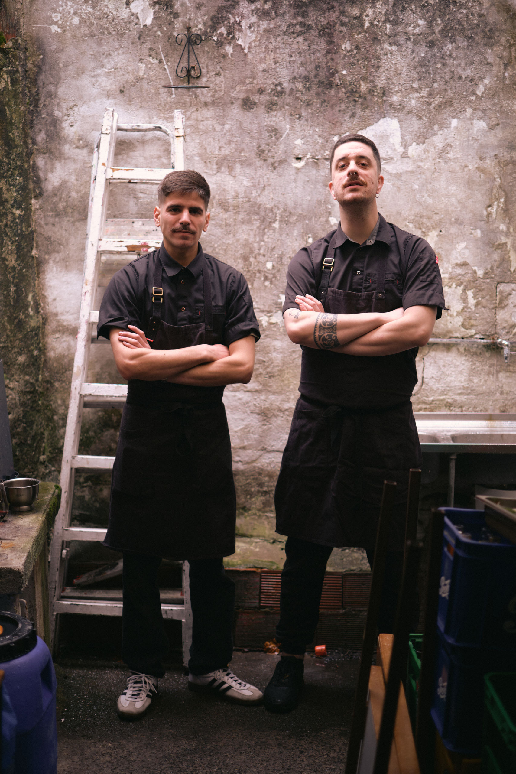 Javier y Gari, para los amigos, han coincidido en varios restaurantes y eso es lo que les llevó a emprender juntos este viaje desde lo alto del mástil para ver el mejor producto de las aguas del Cantábrico y la tierra firme, en una antigua taberna en el centro de Zarauz (Guipúzcoa) –calle de Azara,1– transformada para dar vida a este proyecto tan interesante. Javier, criado entre Zaragoza y Cascante (Navarra), se formó en las cocinas de Canalla Bistró, Santceloni, La Candela Resto, Santo Mauro y Nakeima; y Gari creció entre San Sebastián e Irún y pasó por restaurantes como Kokotxa, Canalla Bistró, Nakeima, Annua, Echaurren, Quintonil (Ciudad de México) y Tohqa.