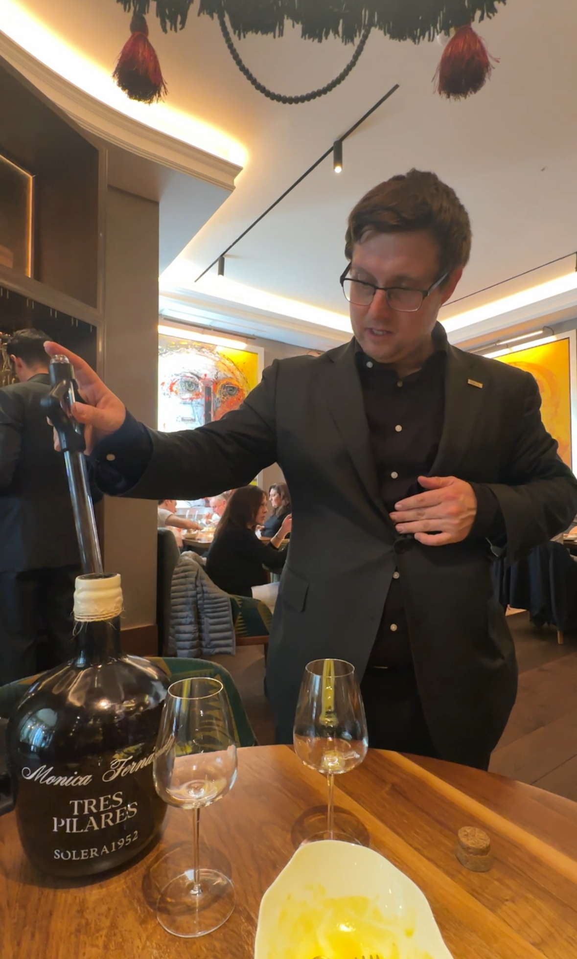 La carta de vinos es muy extensa, cuenta con más de 400 referencias de 21 países diferentes y con una gran variedad de vinos por copas.El encargado de maridar la comida fue el sumiller de ABYA, Rodrigo Sicilia, quien fue sacando auténticas maravillas de la bodega para hacer la comida aún más especial.