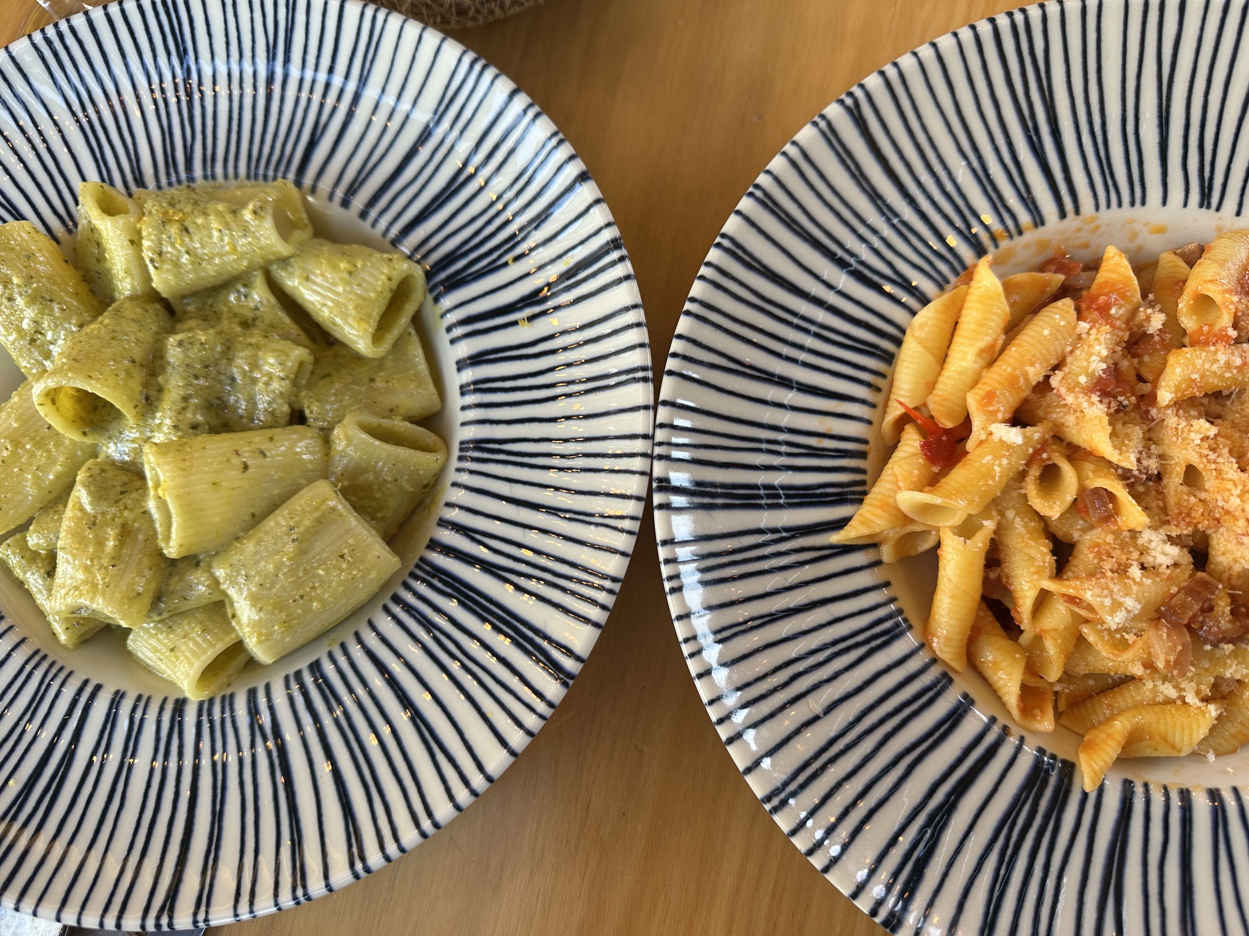 Como buen italiano, la pasta y las pizzas son su punto fuerte. Las pizzas las dejamos para otra visita pero hay que destacar que estamos ante un restuarante con pizzas multimasa, donde ofrecen siete tipos diferente de masas madre de alta calidad con más de 72h de fermentación, lo que garantiza una mejor digestión.