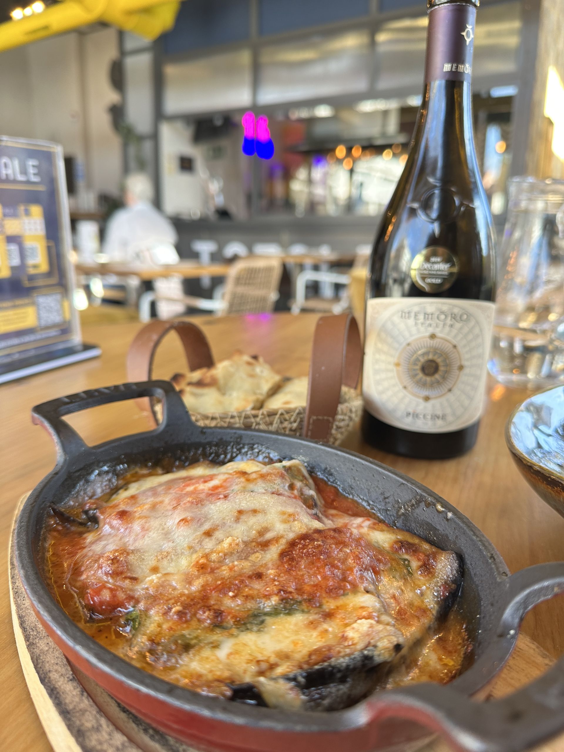 Otro de los imprescindibles en Totale es la melanzane alla parmigiana (13,90€), servida en la propia cazuela para que mantenga el calor y el queso fundido y que consta de una salsa de tomate San Marzano, berenjena a la parrilla, scamorza ahumada, mozzarella Fior di Latte, parmesano rallado y albahaca fresca.