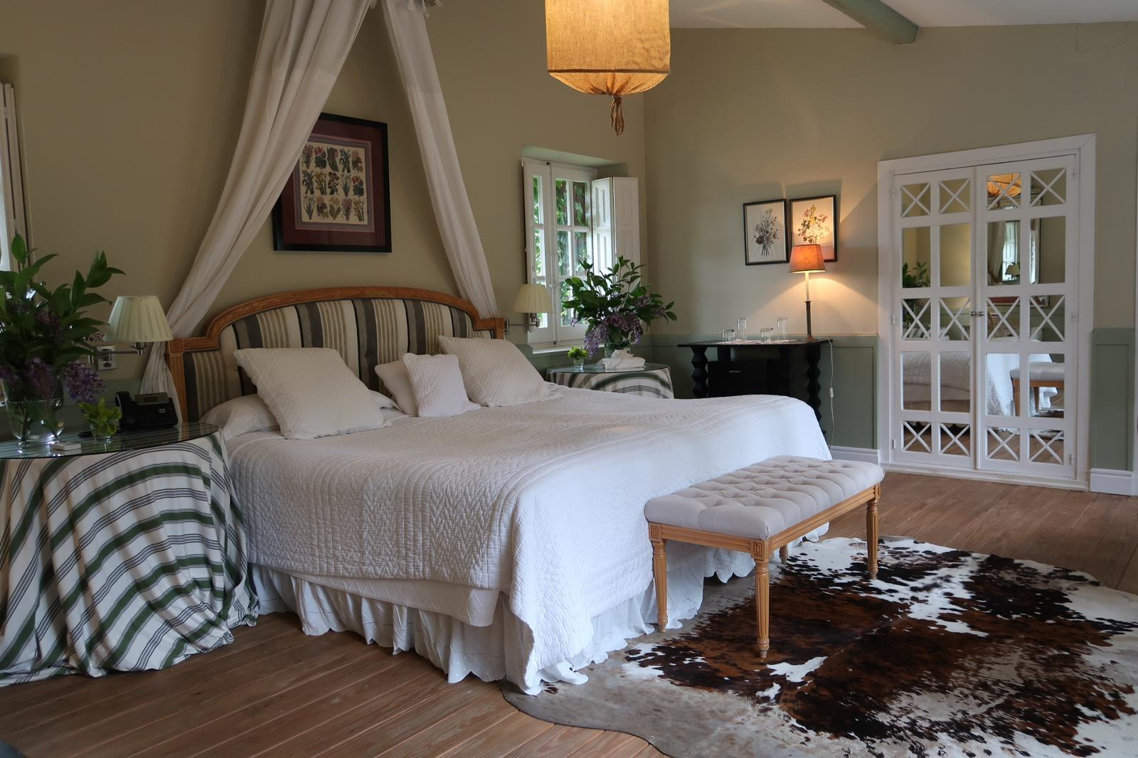Valdepalacios ofrece una experiencia de alojamiento única, con un total de 27 habitaciones espaciosas que varían entre 30 y 90 metros cuadrados. Cada una de estas habitaciones es diferente y está decorada con un encanto personal que refleja el carácter distintivo de esta finca. Puedes elegir entre alojarse en la casa original de la finca, una construcción que data del siglo XIX, o bien optar por una de las habitaciones distribuidas por sus jardines. Estas últimas ofrecen unas vistas espléndidas del campo, brindando una conexión especial con la naturaleza que rodea Valdepalacios. En todas esas opciones cada detalle está cuidadosamente diseñado para ofrecerte una estancia inolvidable.