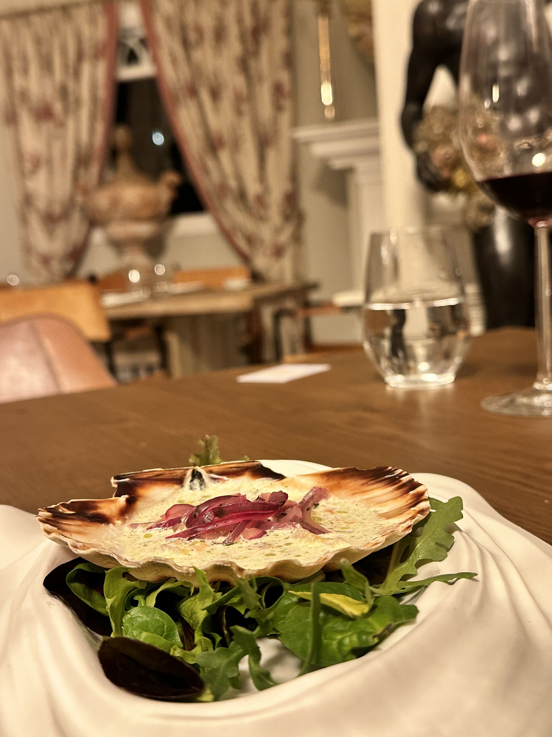 Para una cena tranquila porbamos una buena ensalada de aguacate con langostinos y berberechos (29€), un estupendo ceviche de vieira en su concha (12€ unidad) con el toque cítrico perfecto. De esas lonjas que proveen al hotel de lo mejor de nuestros mares llega a la mesa un fresco rodaballo al horno (22€) con parmentier y verduritas. Terminamos con un muy buen magret de pato entero (37€) con pesto y una patata violeta de lo más curiosa.