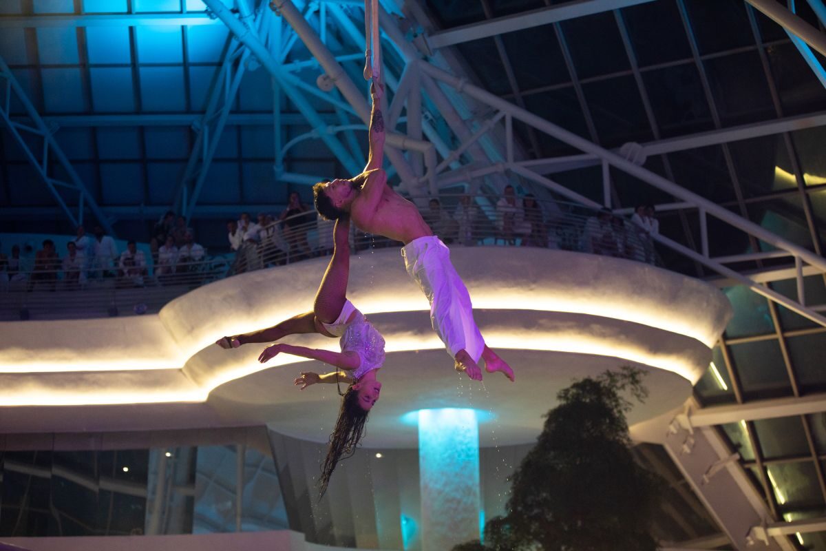 El show, que tendrá lugar en la Gran Laguna, combinará acrobacias de 'pole dance' en el escenario y figuras aéreas con straps ejecutadas por una pareja de artistas reconocidos internacionalmente por participar en America’s Got Talent, Operación Triunfo o el Cirque du Soleil. La puesta en escena se complementará con música en vivo de violín y violonchelo eléctricos, además de un impresionante despliegue de luces y juegos de agua. Las funciones están programadas para el 17 de abril (21.40 horas); 18, 19 y 20 de abril (11.40 y 21.40 horas) y 21 de abril a las 11.40 horas.