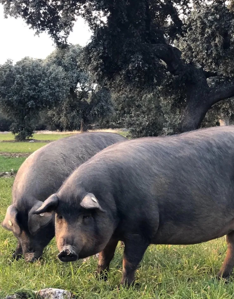 Efectivamente, la propuesta gastronómica se nutre fundamentalmente de sus dos fincas de producción ecológica con huerta y ganadería y ubicada en la provincia de Ávila. Una de las fincas cuenta con 150 hectáreas y, en ella, es donde se alimenta el cerdo ibérico a base bellota y pasto de la dehesa de la finca, que da lugar a sus embutidos como el jamón o el lomito. Ahí también se crían pollos en libertad y en régimen ecológico, en rotación de pastos para no agotar el terreno. La sostenibilidad y el cuidado del medioambiente se alza como su bandera y se refleja en la calidad de sus productos.