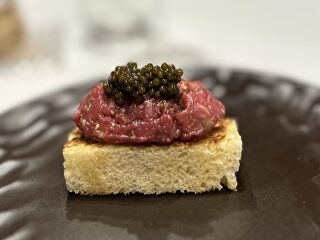 Como te decía, otra de las opciones para disfrutar de la cocina de Toño es su Gastrobar, de carácter más informal, con capacidad para 40 comensales y con una oferta gastronómica pensada para disfrutar y compartir. Platos clásicos de la casa como las croquetas melosas de jamón ibérico de bellota o el tartar de atún rojo con aliño japo, pisto manchego y huevo frito de corral se complementan con una selección de carnes a la parrilla. La carta también cuenta con una gran variedad de opciones para el centro de la mesa, así como ensaladas, hamburguesas y sándwiches.
