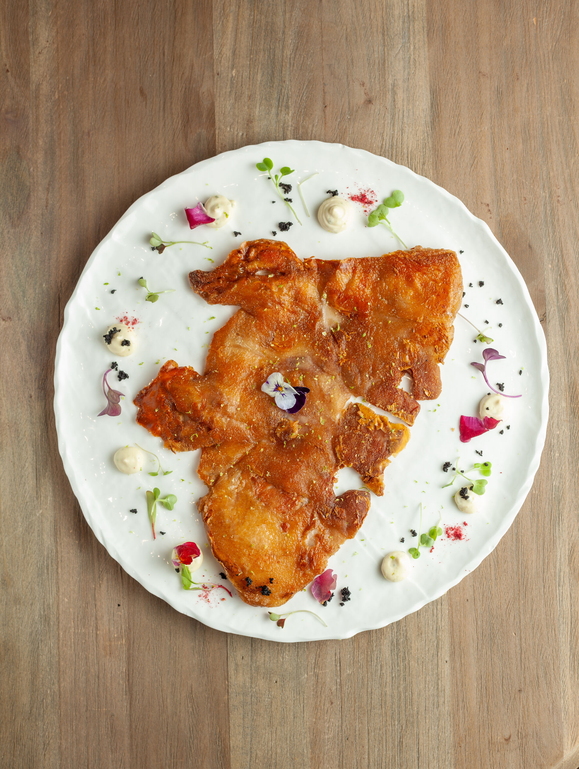 Si nos decantamos por los productos ibéricos, en el período de montanera, ellos mismos seleccionan los ejemplares que abastecerán durante todo el año al restaurante. Probamos unas espectaculares mollejas a la brasa con chimichurri y uno de sus platos estrella, la careta de cochinillo confitada 90ºC con crema suave de ali oli y ralladura de lima (17€), crujiente, melosa, con todo el sabor del producto bien elaborado y con el toque citrico perfecto.