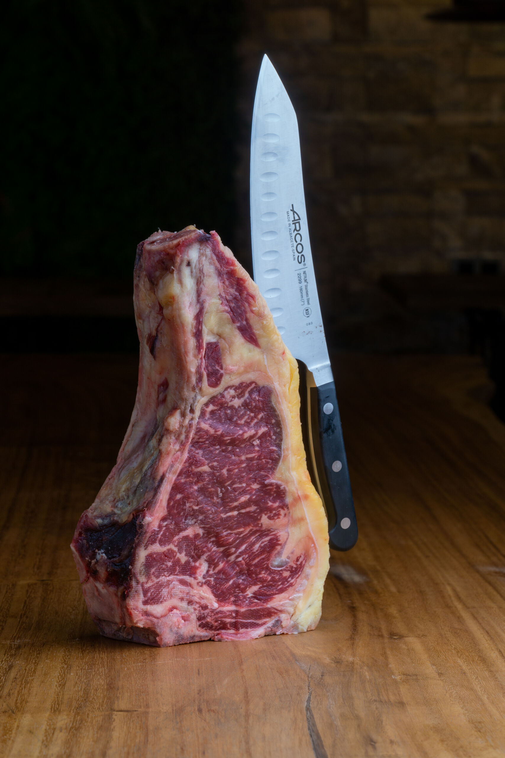 Por el otro lado, los Norteños firma la carne de vacuno, como el fantástico solomillo de vaca rubia gallega a la brasa con patatas fritas (36€) acompañado de unos primorosos pimientos de Lodosa confitados al sarmiento (22€).