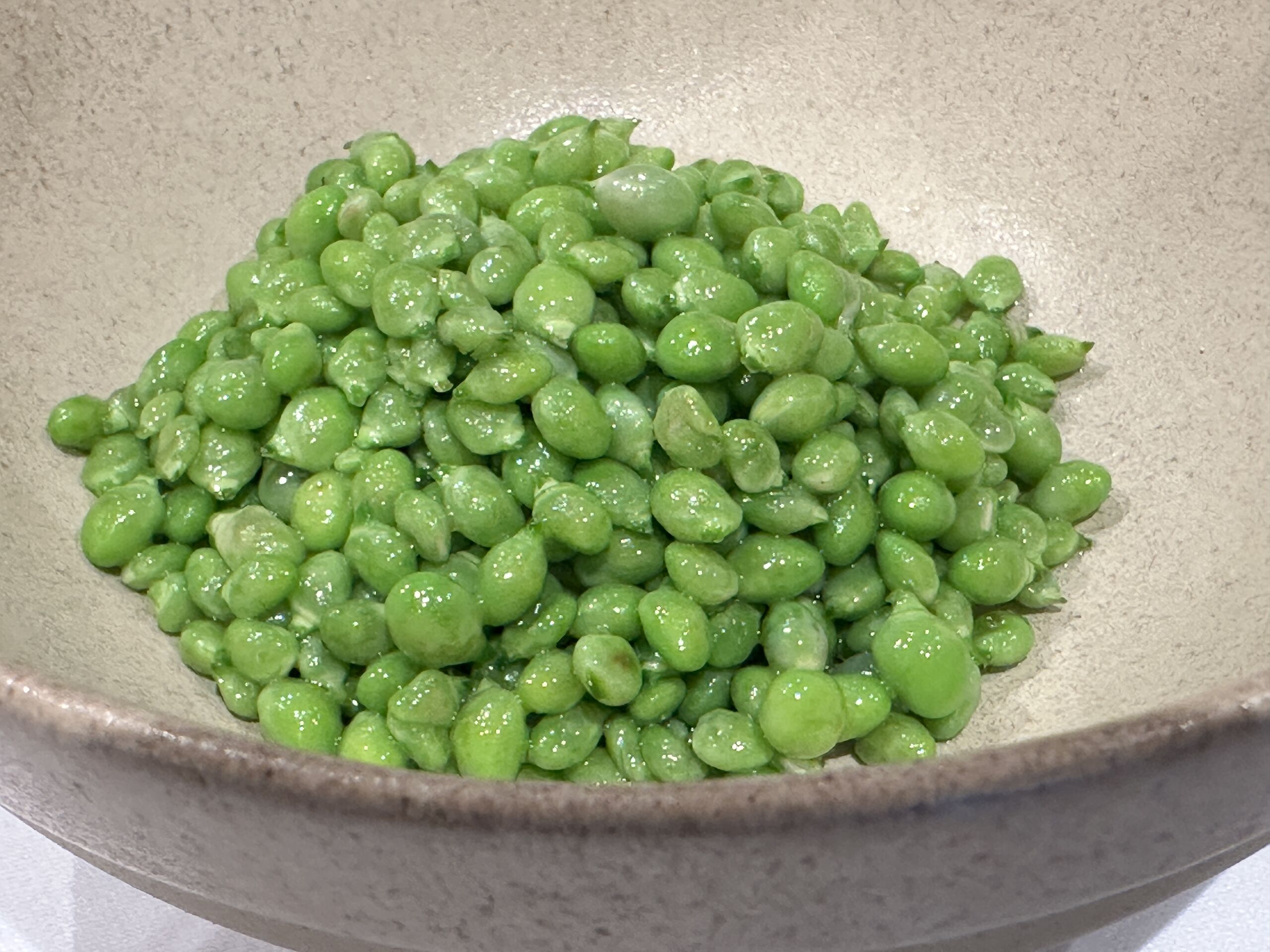 Para los productos de la huerta confían en Finca Los Cuervos, Pau Santamaría y Jesús Aguirre, que desde Navarra le proporciona guisantes lágrima, alcachofas o espárragos de Tudela. Los mismos espárragos a la brasa que disfrutamos en la mesa y que es producto en estado puro. Lo mismo ocurre con el guisante lágrima, que nos sirve los últimos de la temporada con un pequeño toque de brasa y para mezclarlos en en plato con un yema de huevo que le aporta sabor y untuosidad.