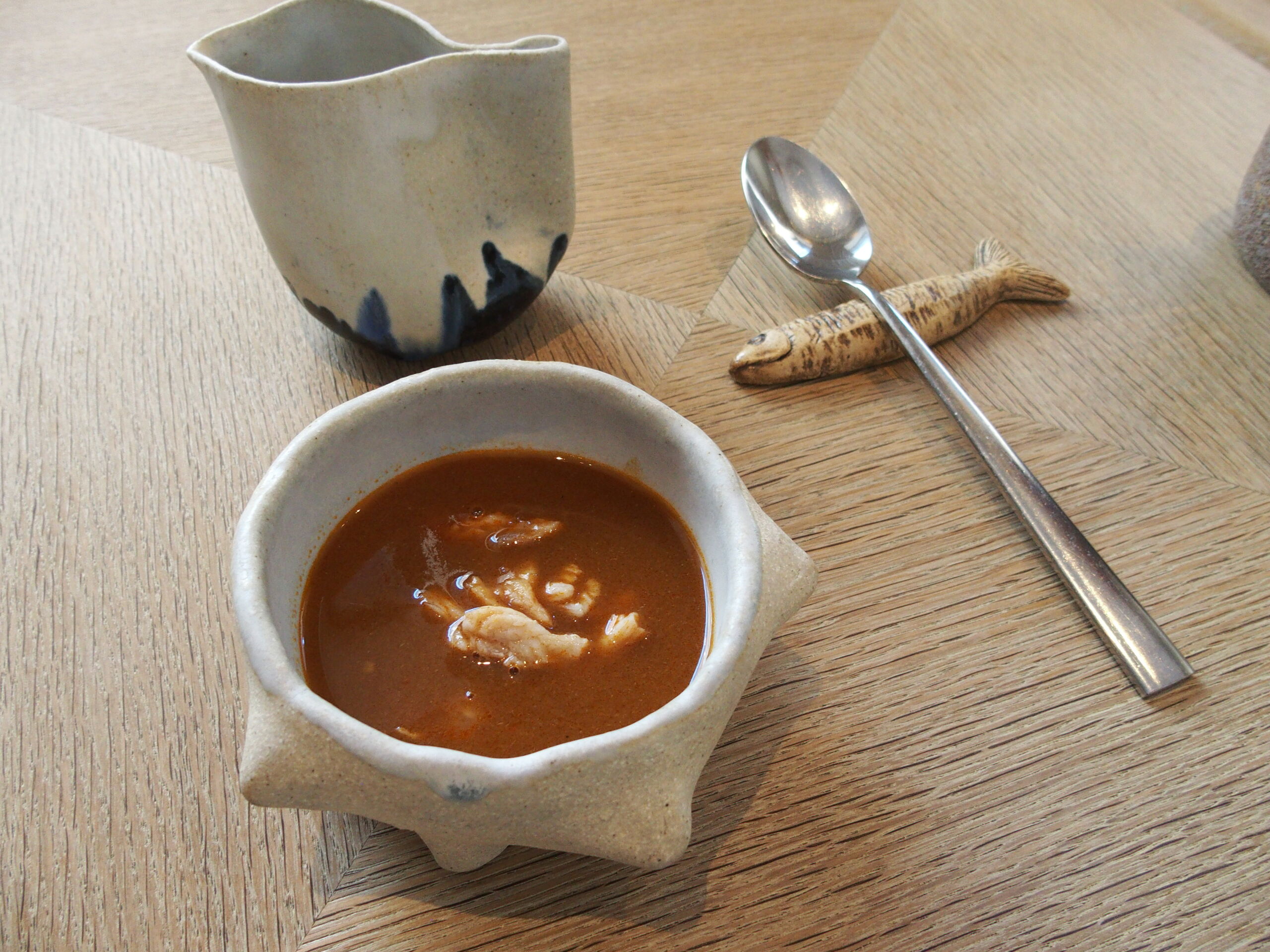 Además del fantástico producto y elaboración, Silvia Manzano y todo el equipo atiende y asesora a cada cliente con mimo y profesionalidad. Igualmente asesora la bodega del restaurante, con una selección de vinos atrevida y muy centrada en pequeños productores que aportan singularidad, diferenciación y dinamismo a una oferta líquida que sigue el compás de la gastronómica. Su sumiller nos ofrece un muy buen vino blanco Socaire, Vino de la Tierra de Cádiz, elaborado por la Bodega Primitivo Collantes con 100% Palomino fino. Un vino en tres ya que el primer trago, no tan frío tenía unas características distintas a después de dejarlo en la cubitera de hielo. Y si el último trago lo dejas atemperar descubrirás otro vino más tirando al palo cortado.