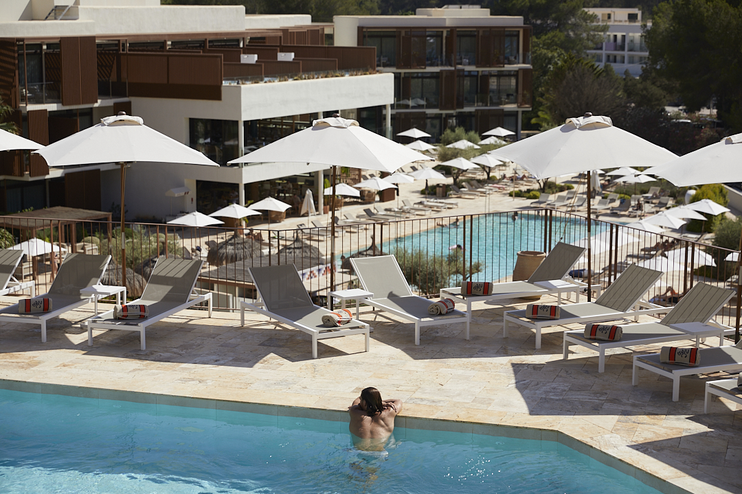 De esas 292 habitaciones, 114 de ellas están enmarcadas en la experiencia The Club. Los interiores de las mismas están inspirados en la arquitectura tradicional ibicenca, combinan materiales orgánicos y locales con una estética luminosa y serena, y se abren a terrazas con vistas al mar, la montaña o las piscinas.