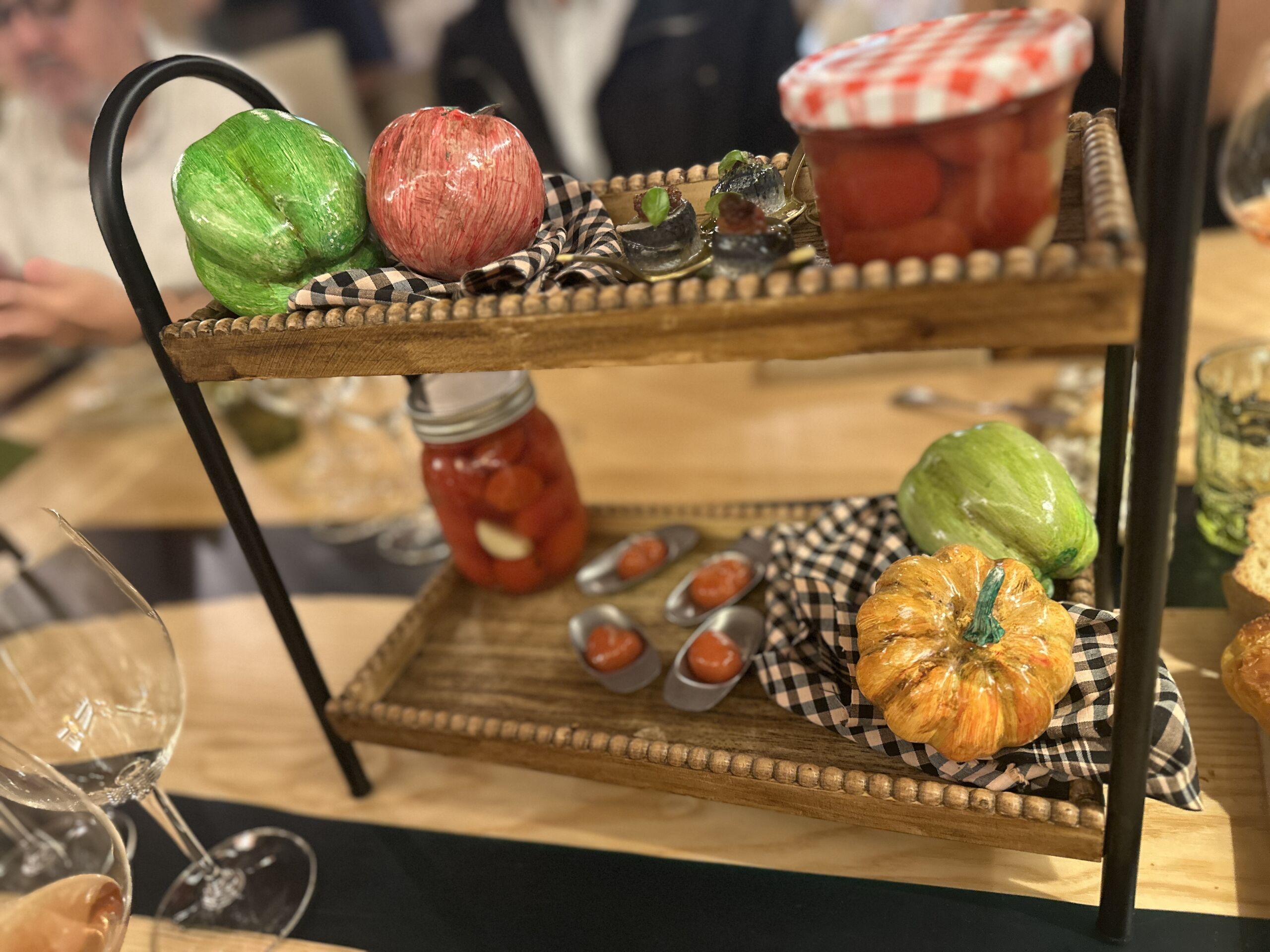 En ese menú especial preparado para la ocasión, probamos una sopa de tomates verdes con albahaca y queso de cabra blanca de Rasquera emulsionada con su AOVE Arbequina. También una causa limeña con ensalada de cangrejo azul del Delta aliñado con su aceite Picual, un blini con mouse de anguila ahumada Roset y huevas de salmón con variedad de aceite Empeltra. También disfrutamos de una tartaleta de verduras de temporada con suave curry de Madras. Y la Clotxa, un bocado del pasado que se mantiene y en el que la tradición y el respeto a las costumbres son esenciales. Se elabora con tomates maduros, ajos escalivados, pan rústico de horno de leña, aranque desmigado y aceite de Arbequina que realza los sabores. Continuamos con una babaganoush con ensalada de brotes y escamas de queso de cabra curado, un lingote de cordero de Horta con una crema de salvia y, de postre, baba al licor con chantilli y Picual.