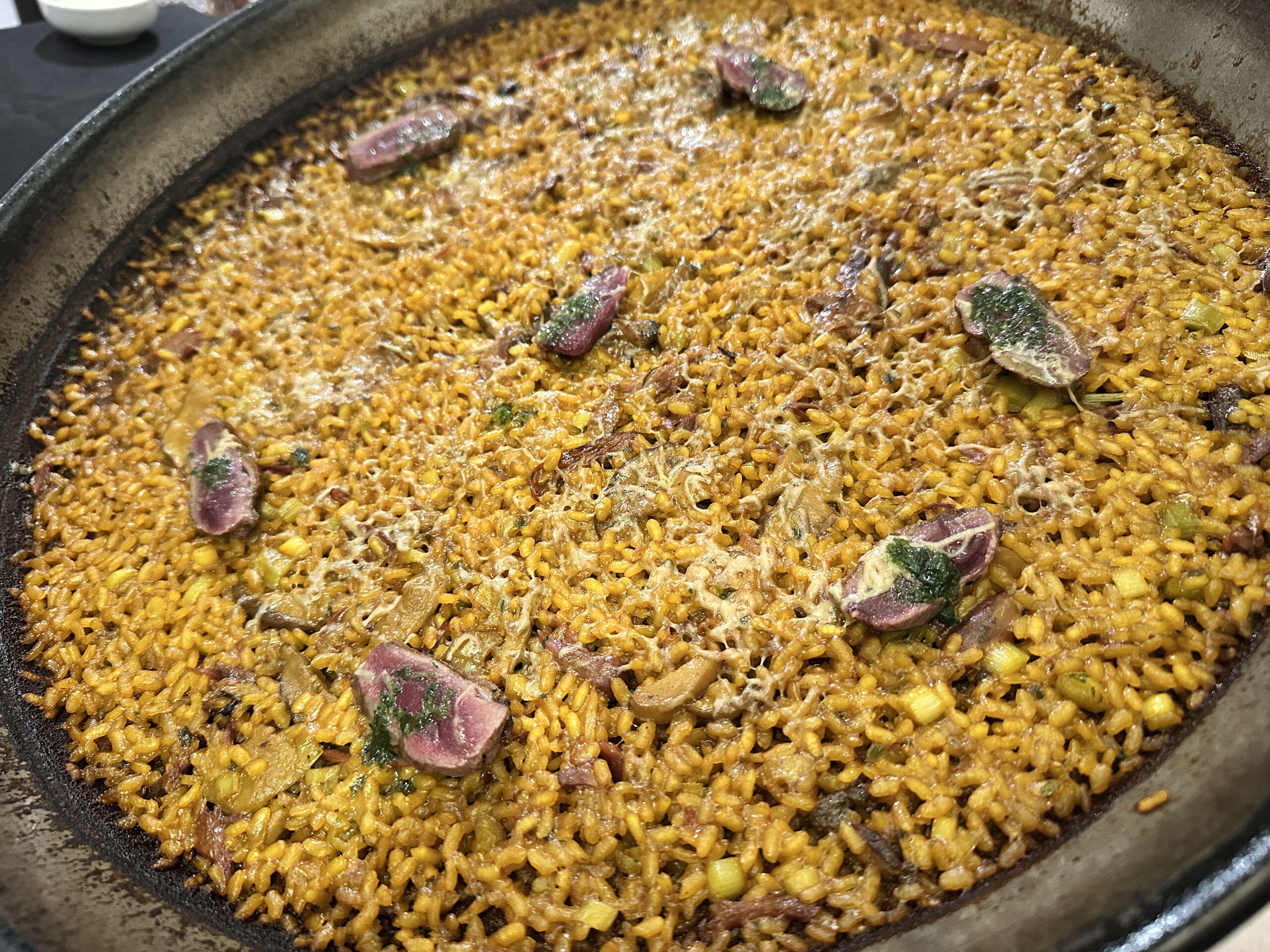 Todo muy apetecible pero sería una pena que no disfrutaras de sus arroces secos en paella: finos, secos, cocinados con mimo y sin concesiones, de los mejores de la capital. Tres opciones ofrece la cocina de Paco Patón: arroz a banda con caldo de galera, la fideuá de boletus y foie o el arroz de pato canetón y foie (29,50 €) que es el que probamos. Con el grano del arroz en su punto perfecto, sabroso y con el acompañamiento del pato y el foie que eleva sustancialmente el sabor.