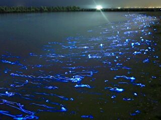 En Galicia, este fenómeno recibe el nombre popular de "mar de ardora". Se trata de un brillo azulado que aparece en el agua durante la noche debido a la presencia de microorganismos marinos –principalmente microalgas como Noctiluca scintillans o fitoplancton–capaces de producir luz por sí mismos.