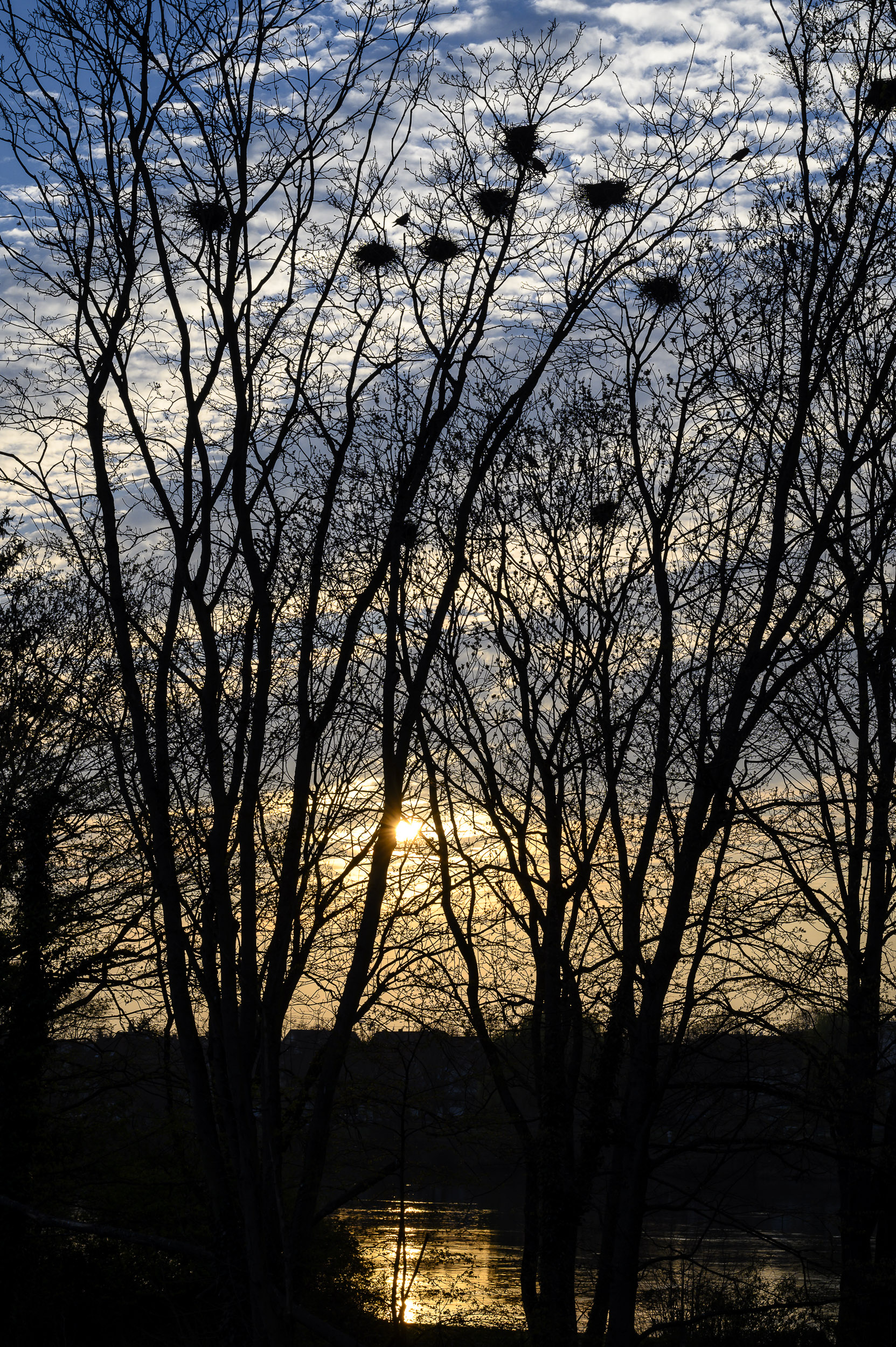 Un atardecer espectacular con el sol reflejándose en las aguas del río Meno.