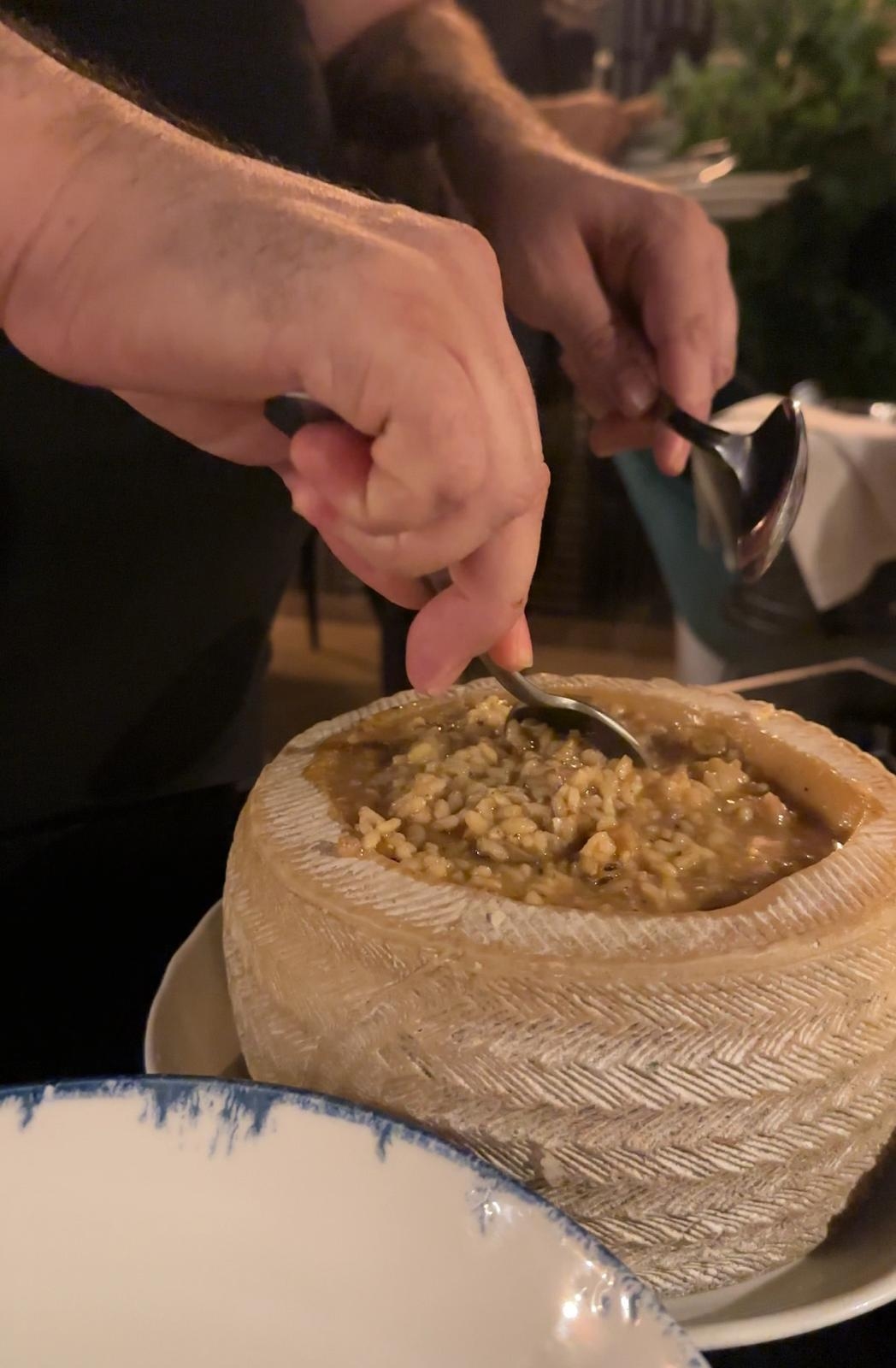 También damos las gracias por servir de conejillo de indias con otro plato que estará en la próxima carta de otoño. Un maravilloso arroz con setas y oreja en rueda de queso Payoyo, similar al risotto y con un profundo sabor que le otorga la casquería y los hongos. La caza la mojamos con un muy buen vino tinto Rompecepas – Bodegas Cinco Leguas. Maravillosa perdiz a la toledana, con una salsa que te evoca al pasado acompañada con zanahorias, pasas y piñones.