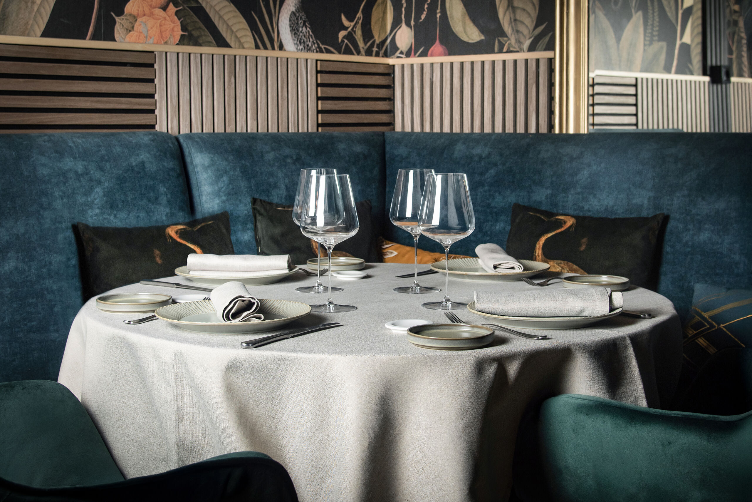 La decoración de los dos conceptos recuerda a sus anteriores aventuras en Don Dimas o Señor Pepe, aunque esta vez la hayan hecho ellos mismos. Una barra con azulejos pequeños y paneles se alterna con el papel pintado de las paredes y sus sillas altas aterciopeladas. Similar al interiorismo del salón, aunque más íntimo gracias a la luz tenue y con unos baños atrevidos en los que te encontrarás a una particular mujer barbuda y un tocador perfecto para empolvarse la nariz.