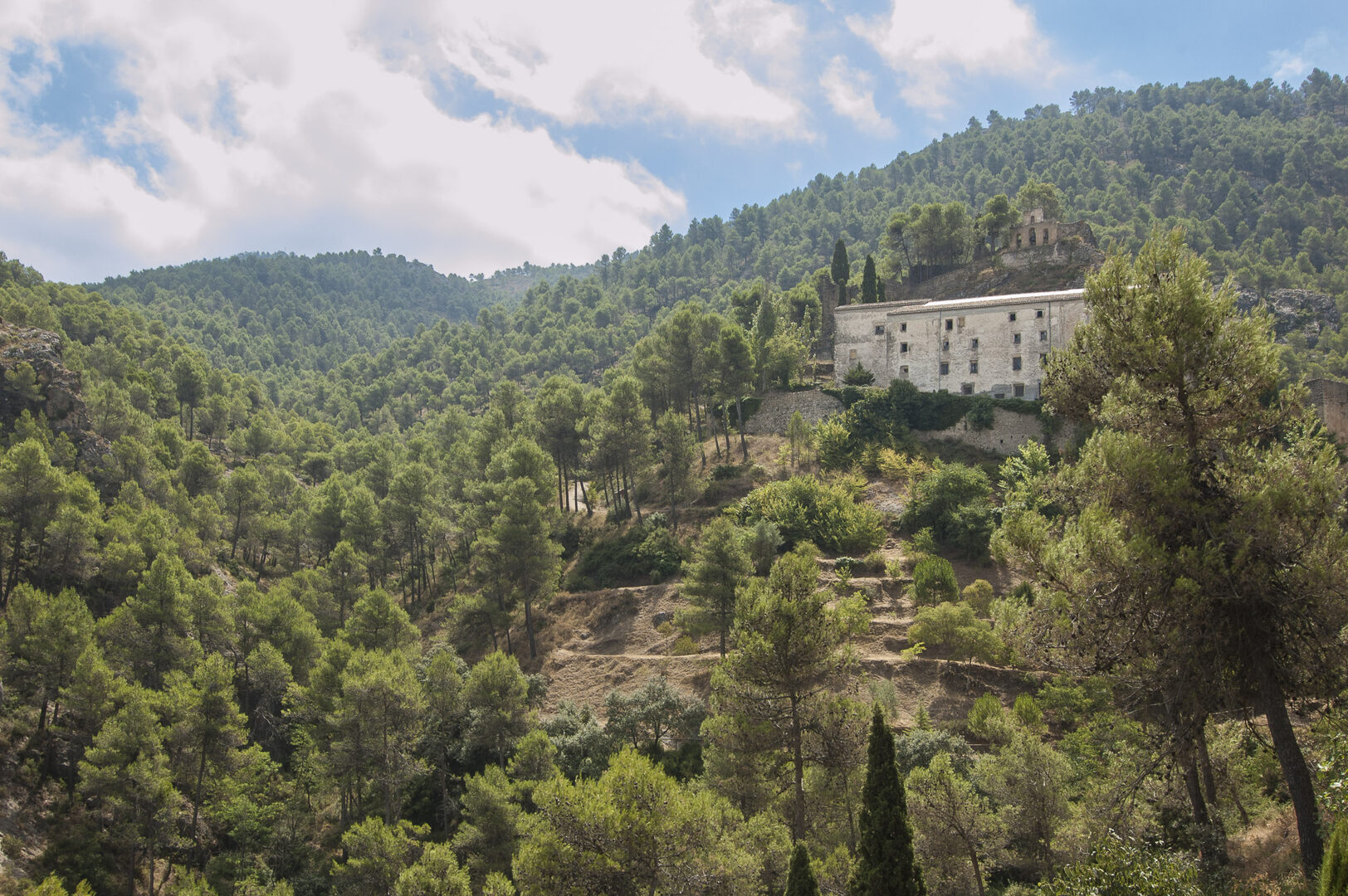 El Monasterio-Santuario de la Virgen de Agres, situado en el punto más alto, está envuelto en la leyenda y ofrece vistas impresionantes en medio de pinares.
