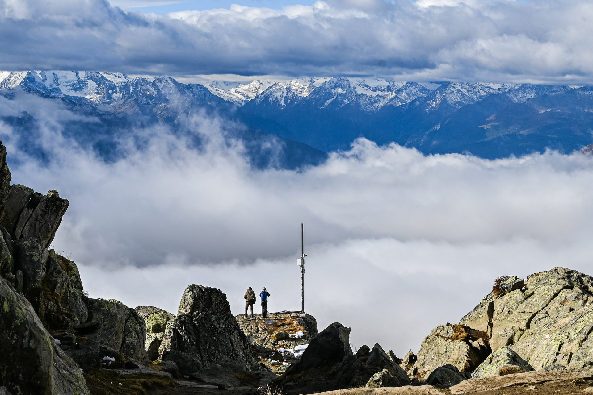 Desde allí arriba también aparecen ante los ojos de los montañeros los picos más famosos: el Eiger, el Mönch, el Jungfrau y el gran Matterhorn.