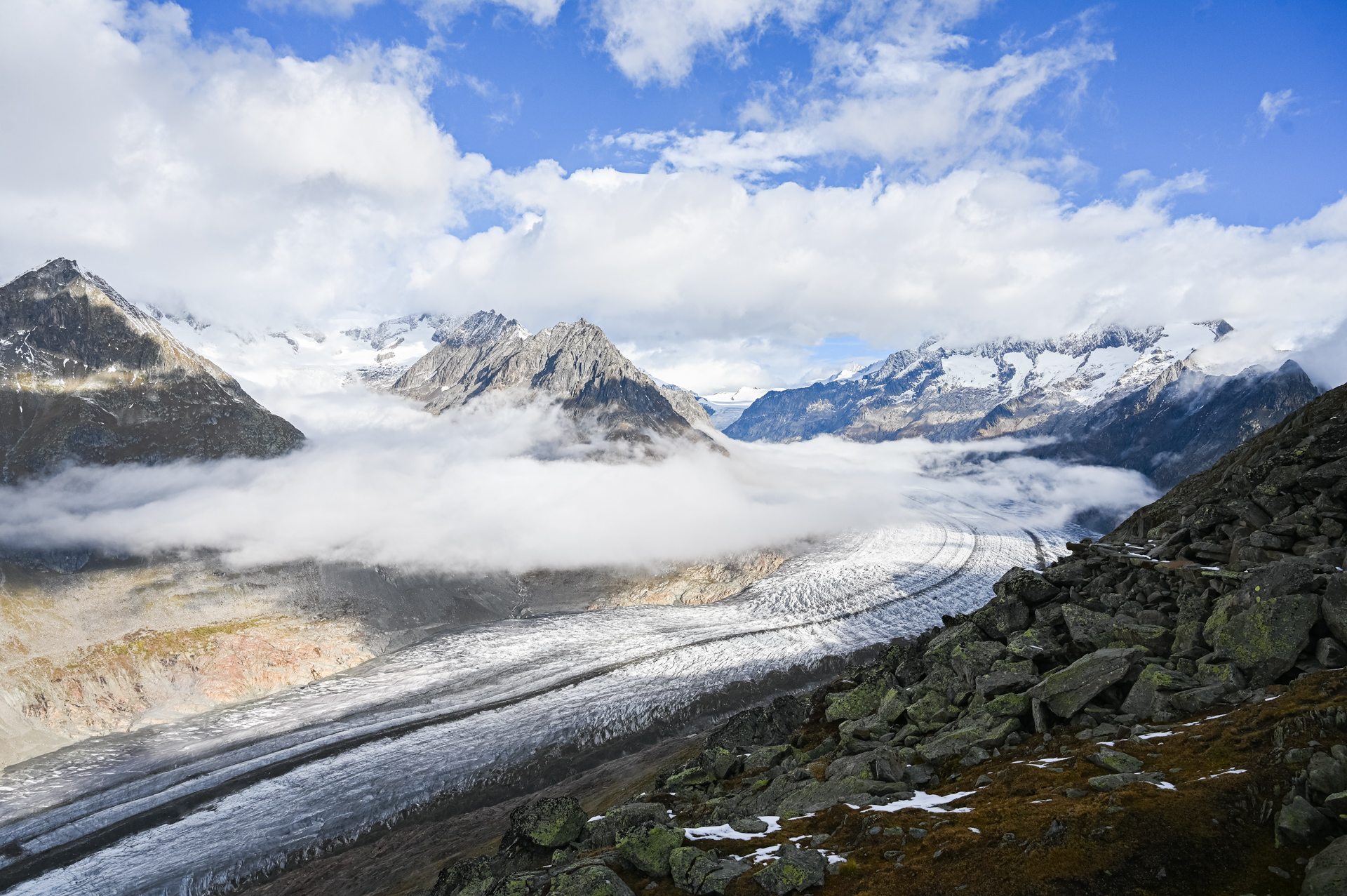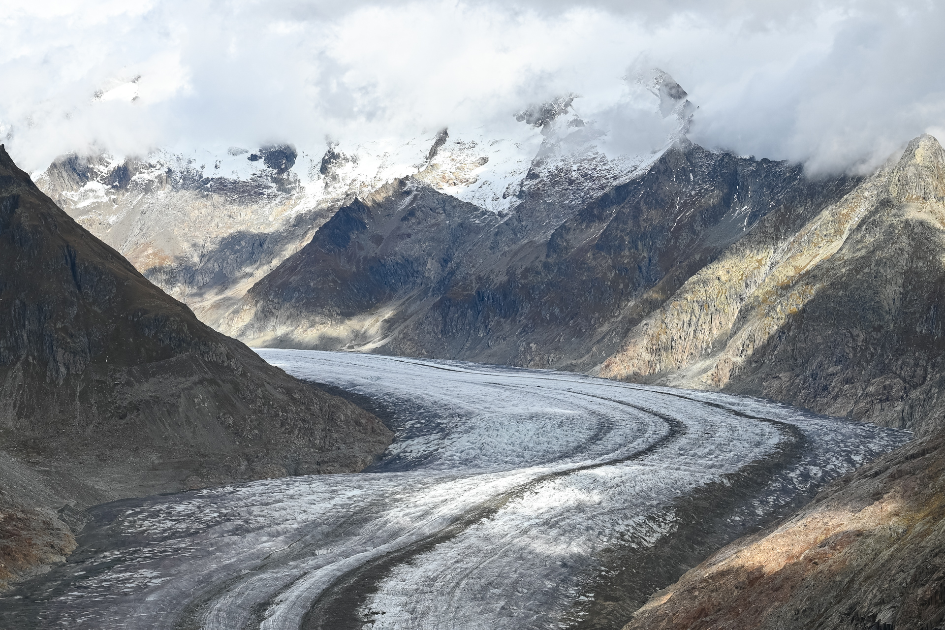 Situado en el soleado cantón del Valais, este inmenso río de hielo de veintitrés kilómetros es el más grande de toda la gran cordillera alpina europea.