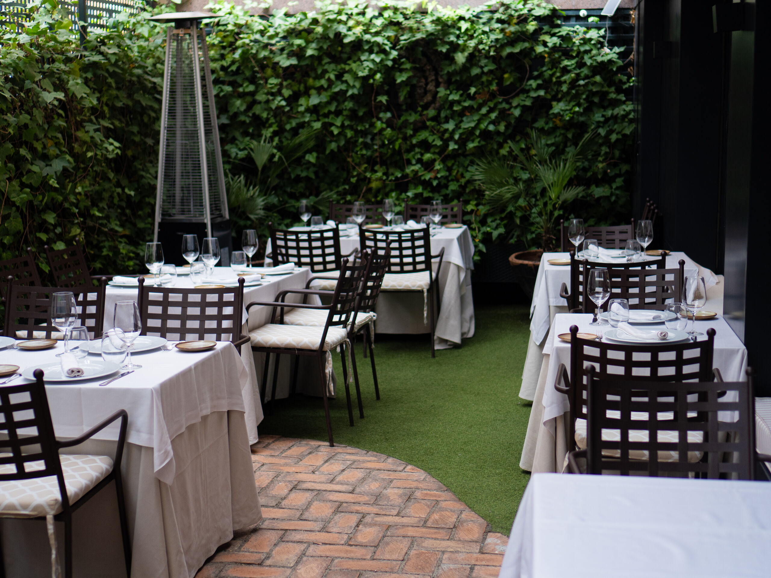 El restaurante ofrece una barra de estilo inglés, un amplio salón principal, y una tranquila terraza interior ajardinada. El guiño a la tradición se encuentra en los portillos (ventanas de barco) junto al ventanal y en los cuadros que presiden la estancia, uniendo a través del arte las dos ciudades esenciales: Madrid y San Sebastián.