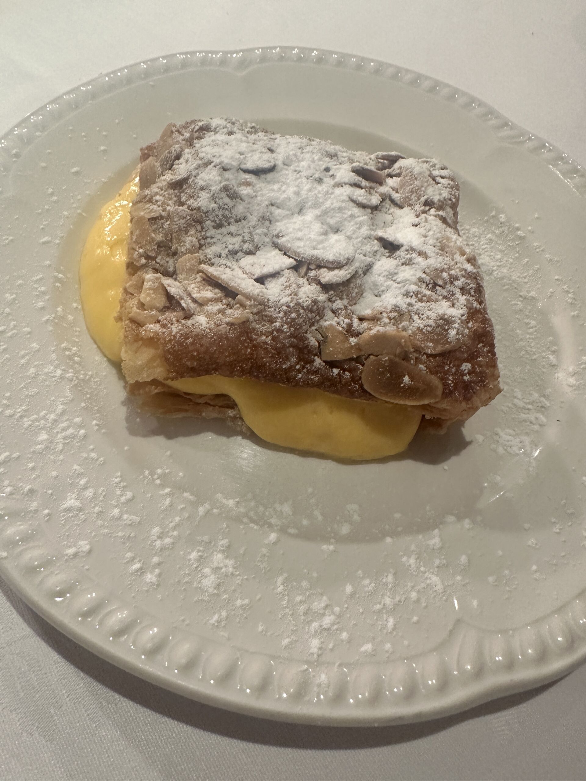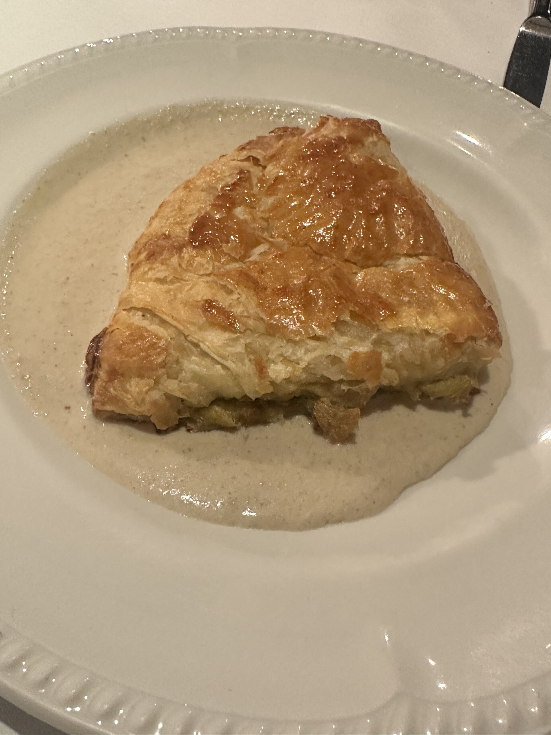 Para el cierre, la pantxineta tradicional vasca, acompañada de helado de nueces y chocolate fundido, pone el broche de oro a una comida que es, en esencia, un homenaje a los sabores.