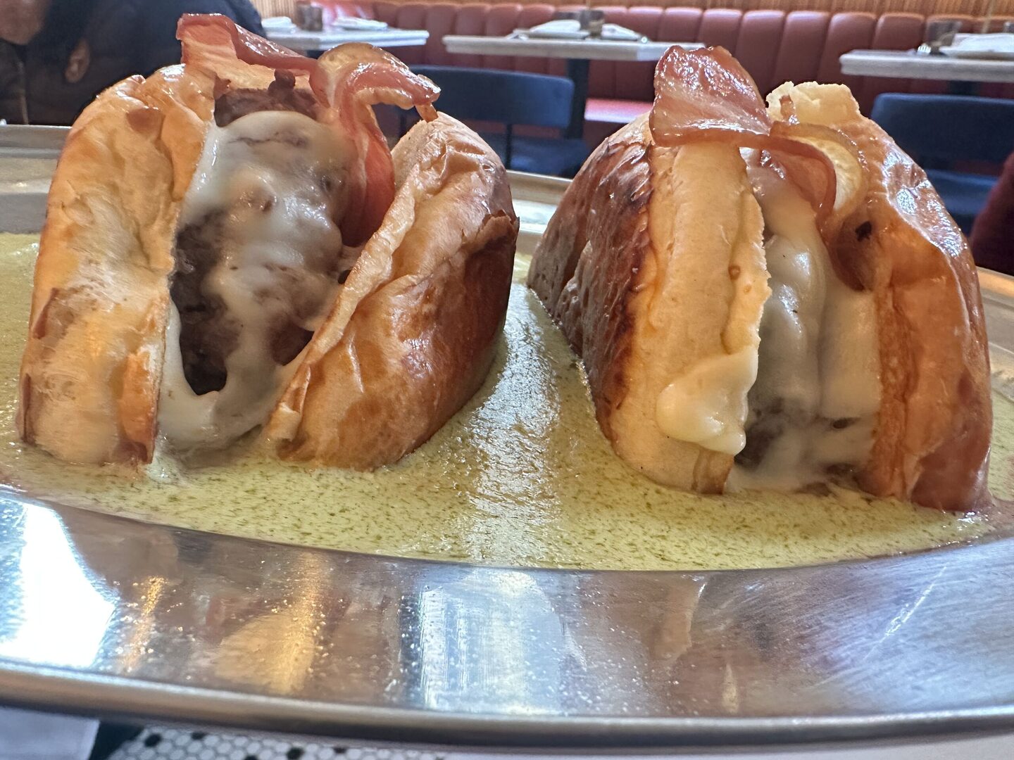 Pero de nuevo, el plato más solicitado de la carta, y entendemos por qué, es su hamburguesa con salsa Café de París (18 €), con queso emmental y bacon crujiente, acompañada por patatas fritas y servida en dos mitades boca abajo para que esta tradicional salsa originaria de Ginebra, no de París, alcance cada bocado.