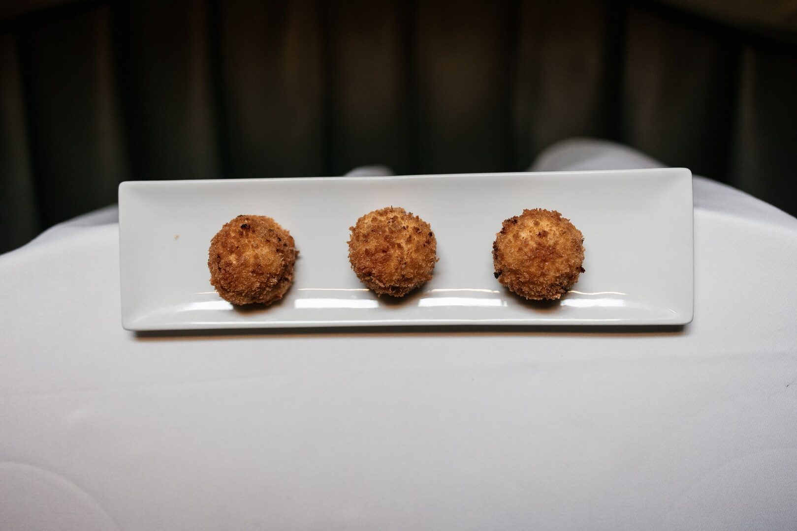 ¿Qué hace a esta croqueta diferente de las demás? El secreto reside en la honestidad de sus ingredientes y en una ejecución milimétrica. Elaborada con jamón 100 % bellota de Sánchez Romero Carvajal, la base es una bechamel extremadamente cremosa a partir de leche fresca.