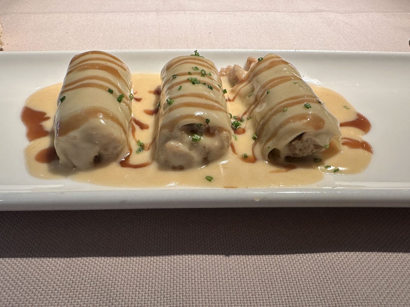 Esa pausa que también se aprecia en los fogones, sobre todo para los amantes de la cuchara que además tienen sus platos destacados en esta casa como el cocido montañés, el cocido lebaniego, los callos a la montañesa o la sopa de pescado. Fabulosos los canelones rellenos de pularda con salsa de foie (J. Manzanal) (16,50 €), con una pasta perfecta y un relleno repleto de sabor que combina a la perfección con la salsa.