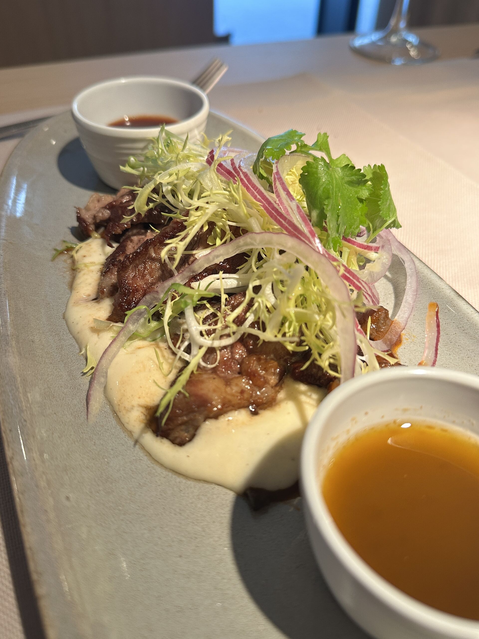 En ese picoteo de la carta, que es perfecto para compartir, ganan sin lugar a dudas las Rabas de Santander (21 €), un producto que es difícil de encontrarlo bueno en la capital. Entre los bocaditos que te recuerdan la infancia están las empanadillas de bonito como las de Angélica (15 €), esas que cada comensal pondrá el nombre correspondiente de su madre o de su abuela. Mención aparte para los espectaculares buñuelos de brandada de bacalao en tempura (16 €), con un rebozado ligero para que el sabor de la preparación del pescado brille con luz propia con una sobresaliente melosidad.