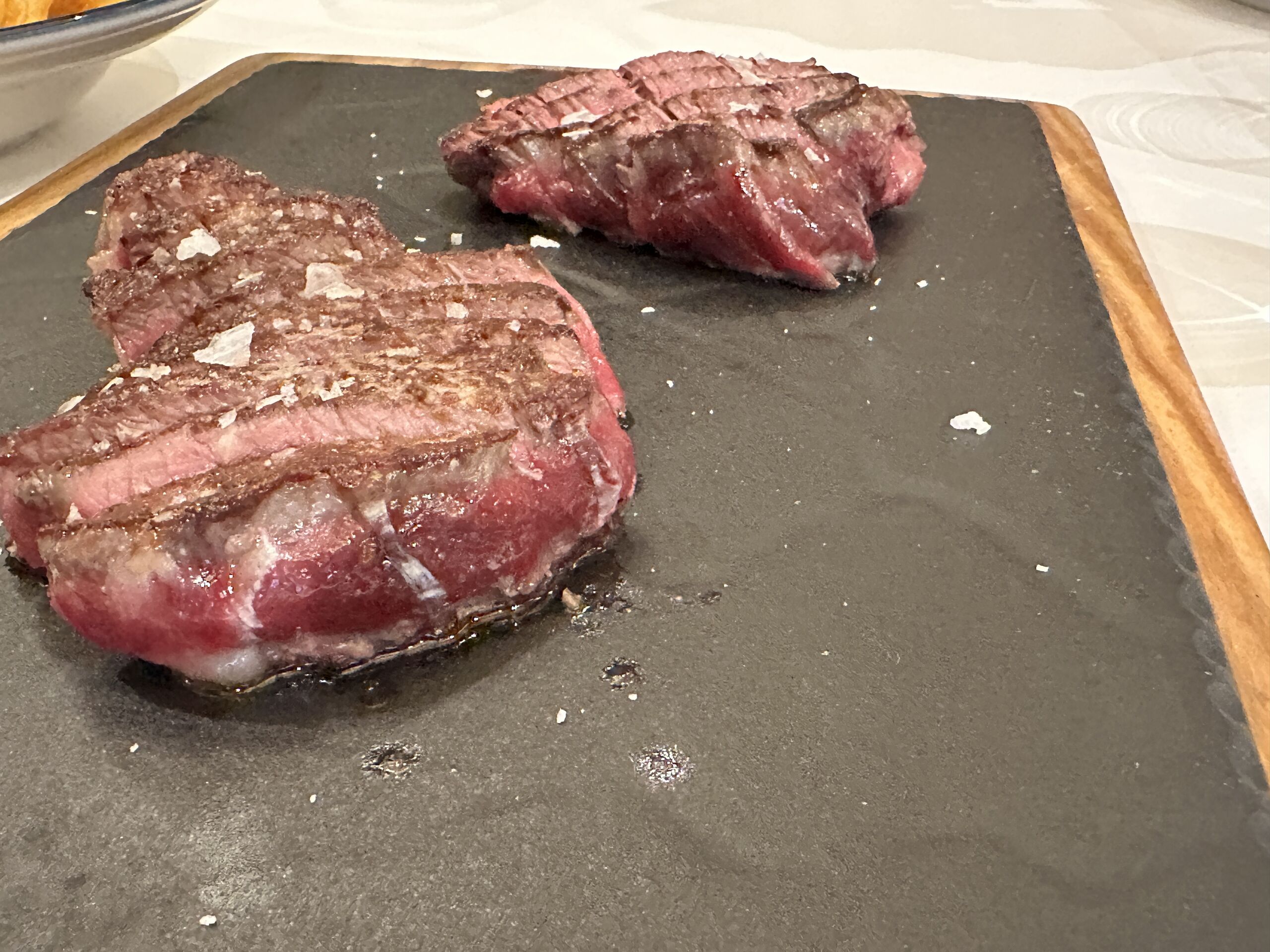 Pero además de las carnes Essentia es, ante todo, una casa de producto total. Ibéricos de leyenda seleccionados en montanera y curados en su propio secadero tecnológico de Tarancón. De ahí probamos un muy buen jamón de Jabugo de bellota 100 % ibérico.