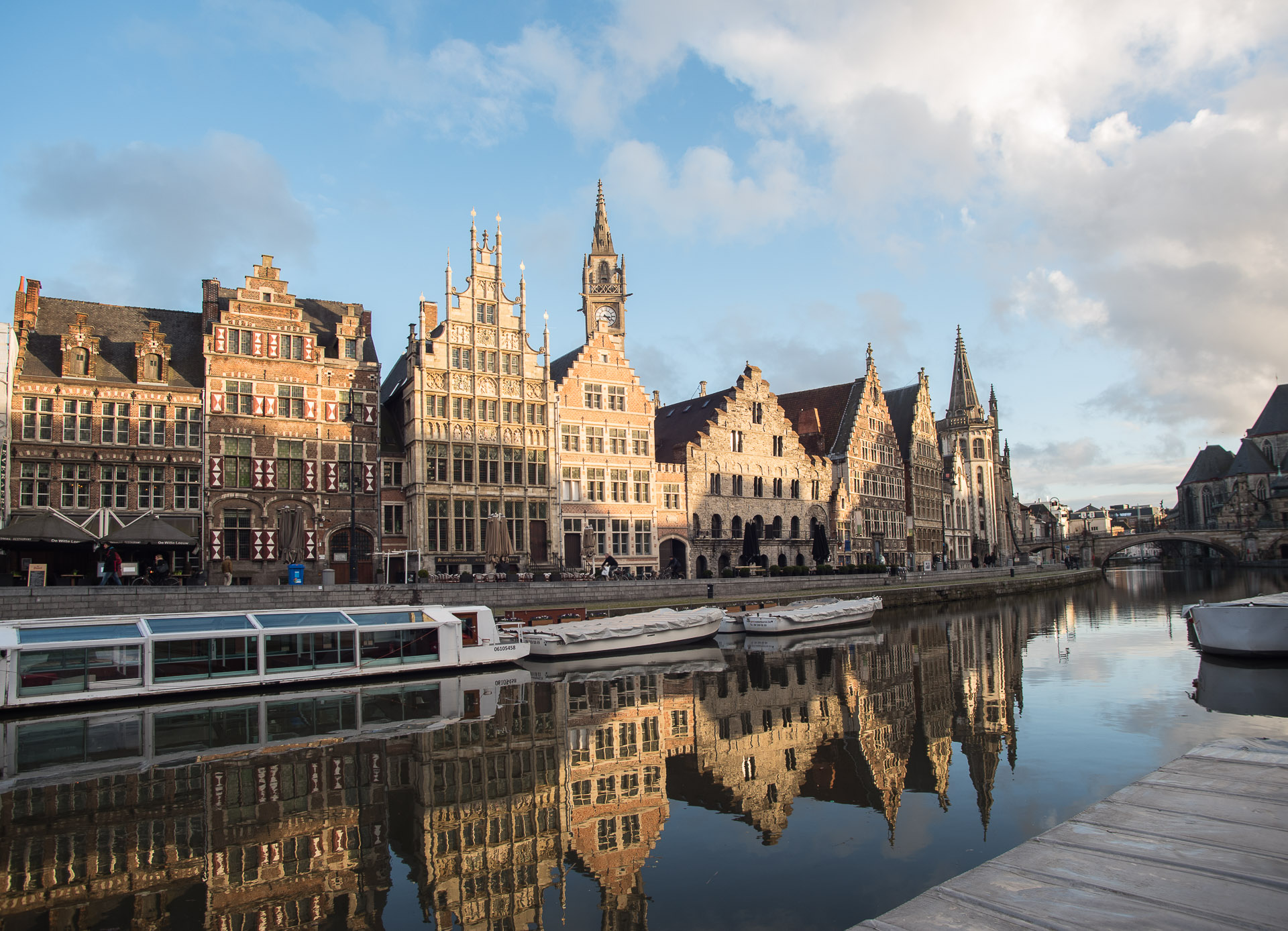 Desde allí unos pocos pasos nos llevan a otra de las perspectivas más hermosas de la ciudad, con el Campanario y las torres de la Catedral de San Bavón y de la Iglesia de San Nicolás. Un mini-Manhattan medieval surcado por modernos tranvías que no le quitan nada de su encanto