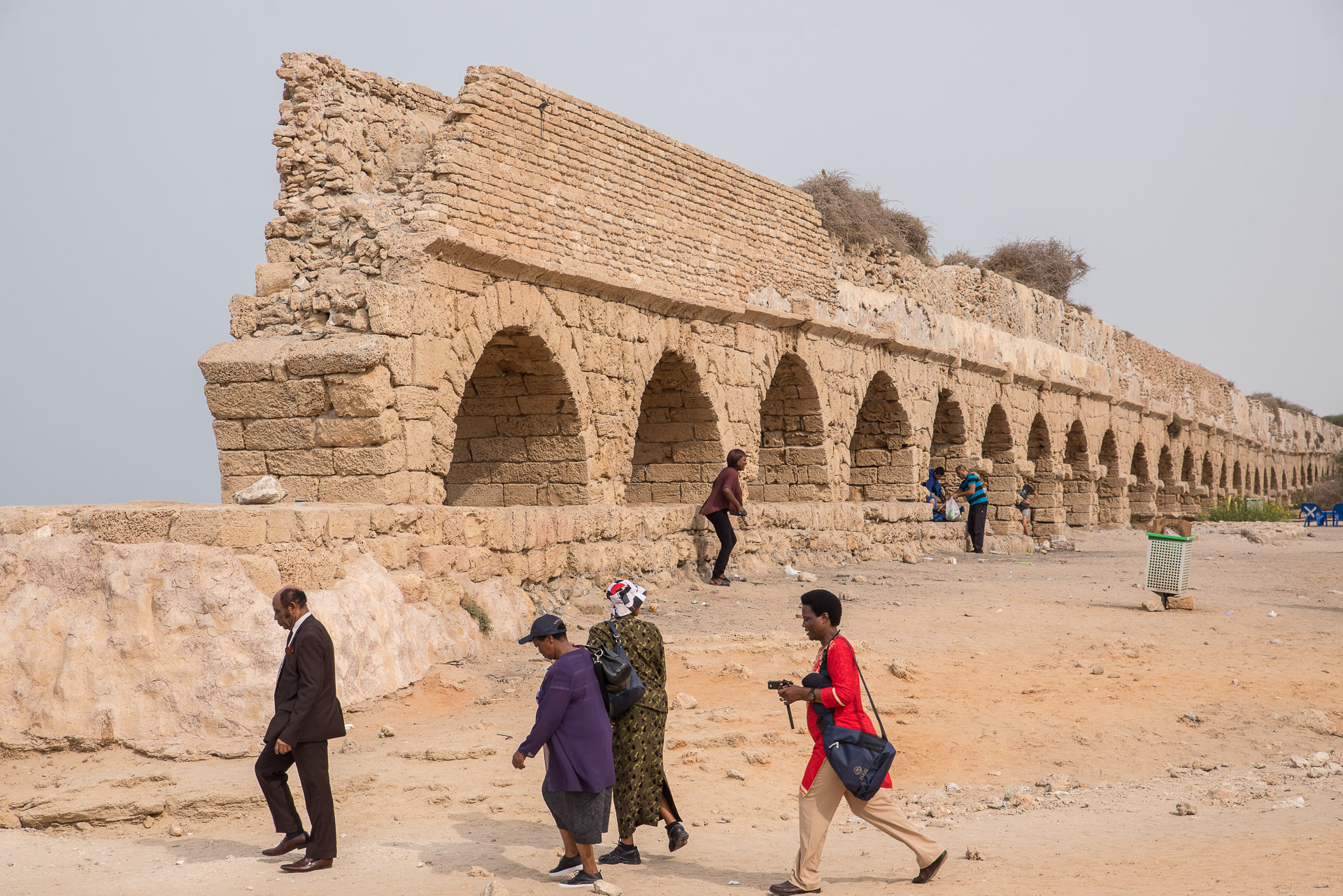 Incluso antes de llegar a Cesarea se puede visitar otra de las obras de Herodes: el acueducto de 16 kilómetros que construyó para dotar de agua a la ciudad. Obviamente no tiene la esbelta grandiosidad del nuestro en Segovia, pero a cambio se puede visitar en una playa que atraviesa de norte a sur, o darse un baño en el mar mientras contemplamos 2.000 años de piedras frente a nosotros.
