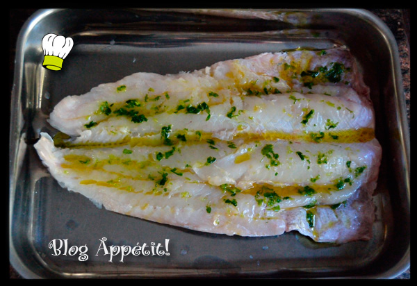 - Ponemos la merluza limpia en la bandeja del horno.