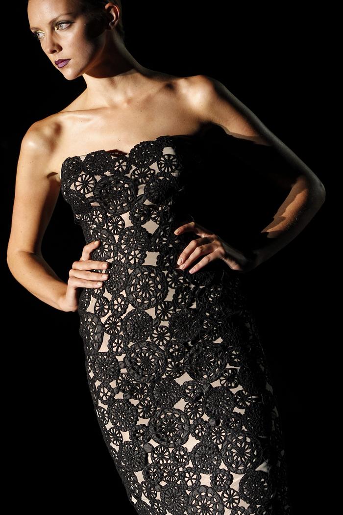 Vestido de fiesta con encaje, uno de los modelos que Hannibal Laguna ha presentado esta tarde