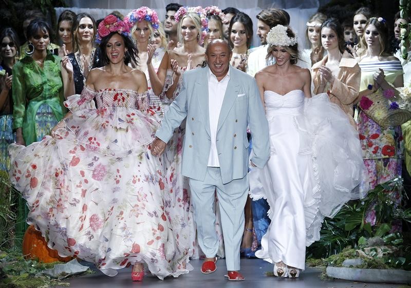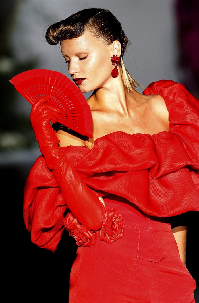 Sin caer en el folclore, Verino ha subido a la pasarela la colección "El jardín de la pasión", con patrones de los años 50 y bañada en los típicos colores españoles rojo y negro, salpicados con notas doradas, rosas, limas
