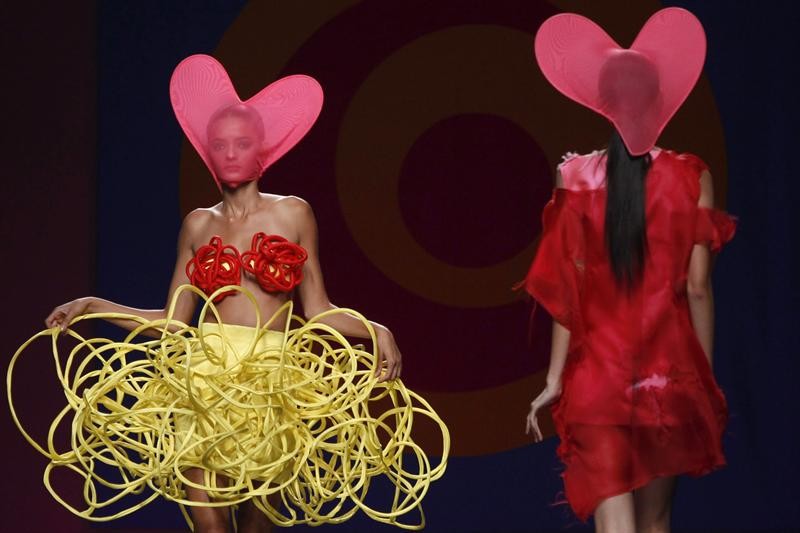 La diseñadora ha vuelto a subir a la pasarela madrileña vestidos aros, faldas pelota, cuerpos corazón y trajes estrella, un canto al optimismo a través de la costura.