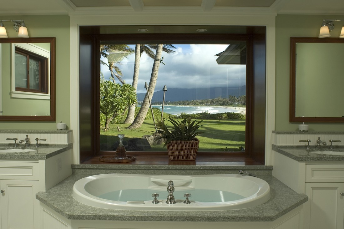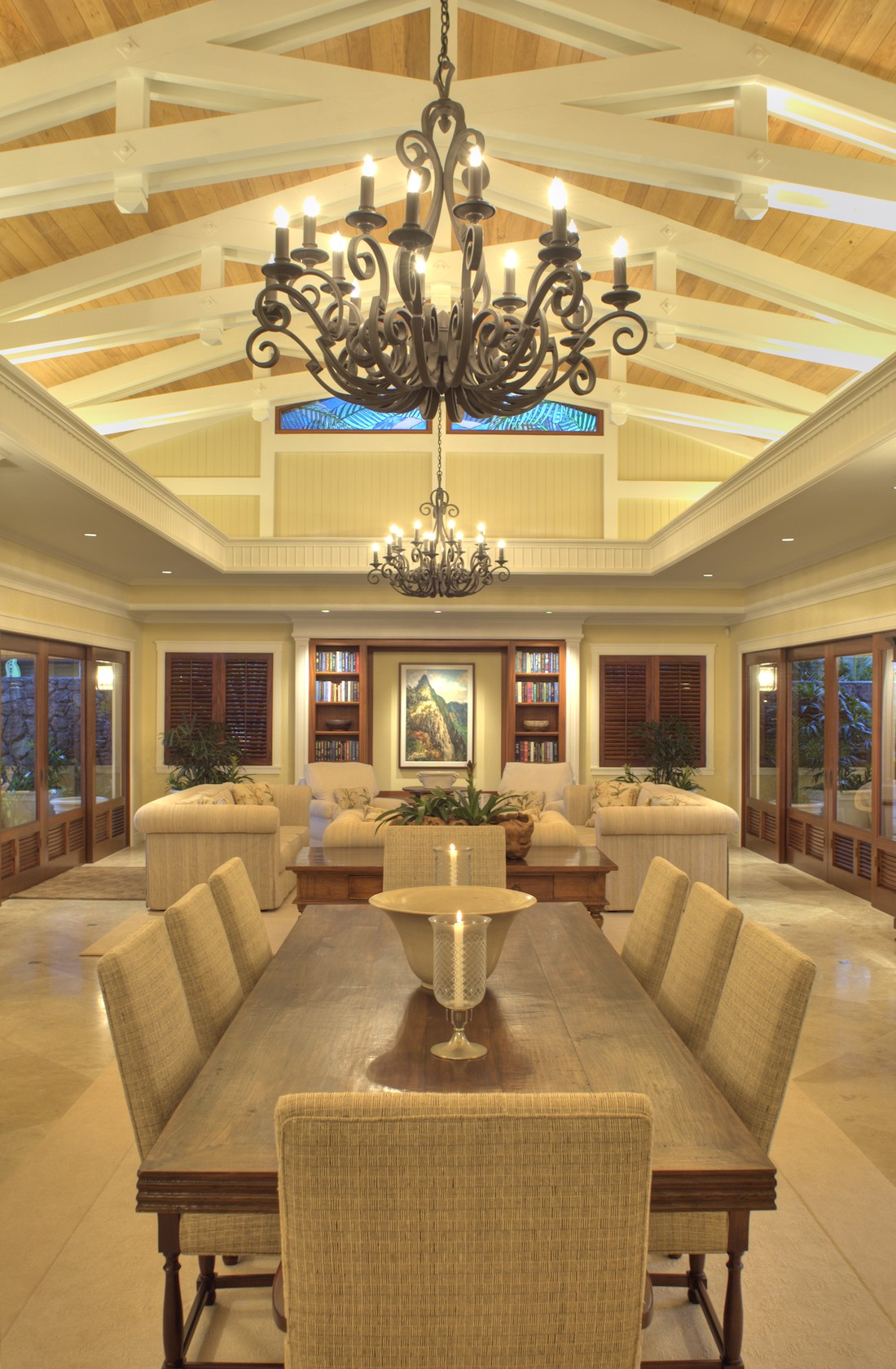 Una vista de la enorme cocina de la mansión, que pese a estar rodeada de roca volcánica también posee unas prodigiosas vistas hawaianas.